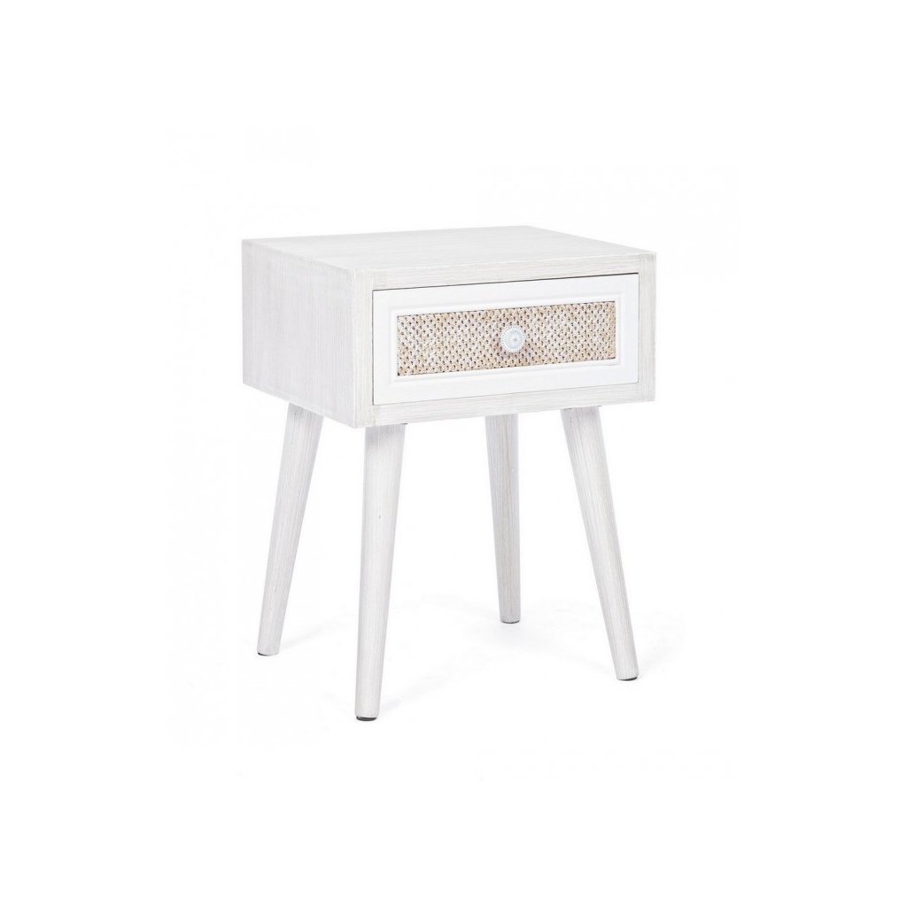 Designový noční stolek MONTIEL od italského výrobce stylového nábytku BIZZOTTO. MONTIEL je stylový noční stolek vyroben ze dřeva a bílých mdf desek. Jako úložný prostor je tu k dispozici jeden šuplík. Otevírá se pomocí kovových úchytů. Maximální nosnost a stabilitu zajišťují 4 nohy. Zajímavým prvkem je vyplnění předních dvířek bavlnou a lnem. Čistota designu nadchne nejednoho obdivovatele moderního minimalismu. Komoda perfektně doplní zejména interiéry zařízené v duchu současných trendů, ale vytvoří i zajímavý kontrast s klasickými prvky.