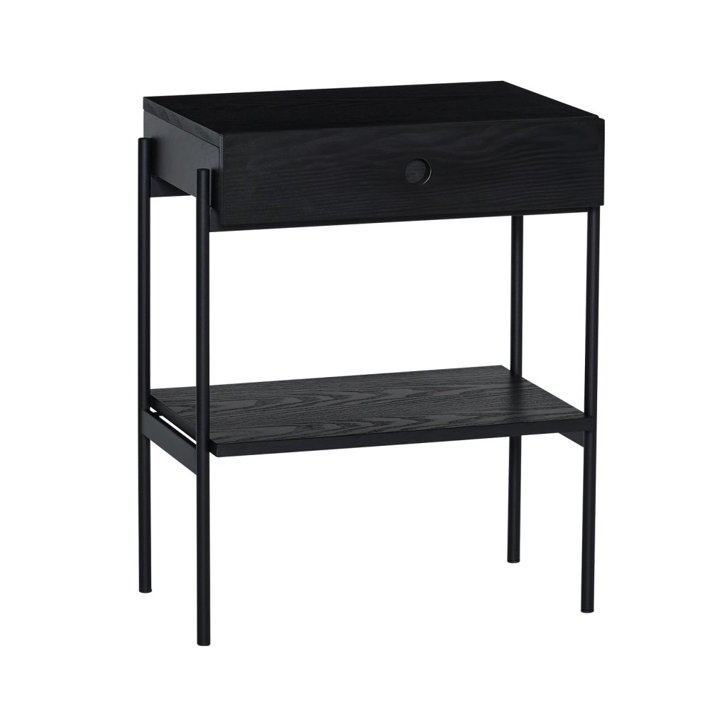 Noční stolek NOIR od dánské značky skandinávského nábytku HÜBSCH. NOIR je vyroben z kombinace jasanové dýhy, železa a MDF desky v černém provedení. Dřevo má certifikaci FSC, což znamená, že pochází z etických a udržitelných zdrojů. Díky zásuvce je stolek velmi praktický. Nádherný kousek, který vytvoří luxus ve vašem domově. Díky černému provedení bude tento noční stolek krásným akcentem vaší ložnice.