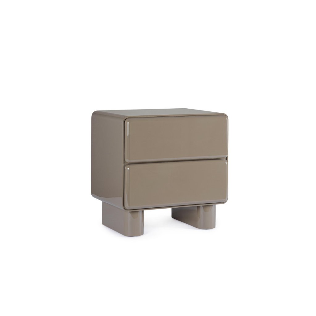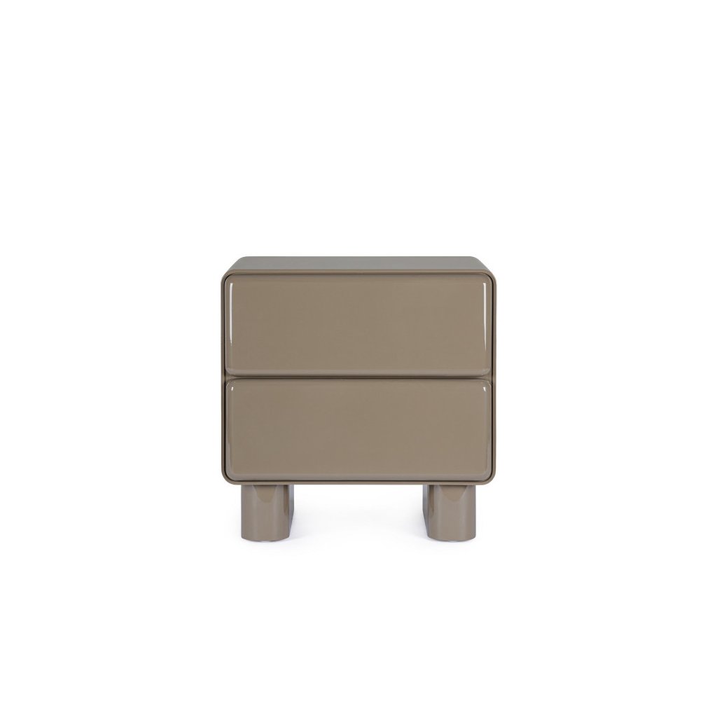Designový noční stolek OTILIA od italského výrobce stylového nábytku BIZZOTTO. OTILIA ve hnědém provedení dodá vaší ložnici moderní a sofistikovaný vzhled. Stolek je vyroben z kvalitní MDF desky s polyuretanovým lakem v lesklé úpravě, která zvýrazňuje jeho elegantní barvu a zároveň usnadňuje údržbu. Díky dvěma šuplíkům nabízí praktický úložný prostor pro všechny vaše drobnosti. Jeho čisté linie a kompaktní tvar z něj dělají stylový doplněk, který se snadno kombinuje s různými typy nábytku.