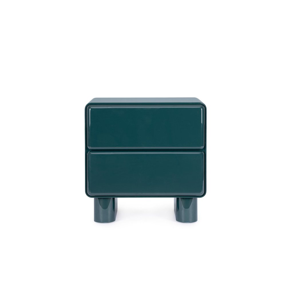 Designový noční stolek OTILIA od italského výrobce stylového nábytku BIZZOTTO. OTILIA v tmavě modrém provedení dodá vaší ložnici moderní a sofistikovaný vzhled. Stolek je vyroben z kvalitní MDF desky s polyuretanovým lakem v lesklé úpravě, která zvýrazňuje jeho elegantní barvu a zároveň usnadňuje údržbu. Díky dvěma šuplíkům nabízí praktický úložný prostor pro všechny vaše drobnosti. Jeho čisté linie a kompaktní tvar z něj dělají stylový doplněk, který se snadno kombinuje s různými typy nábytku.