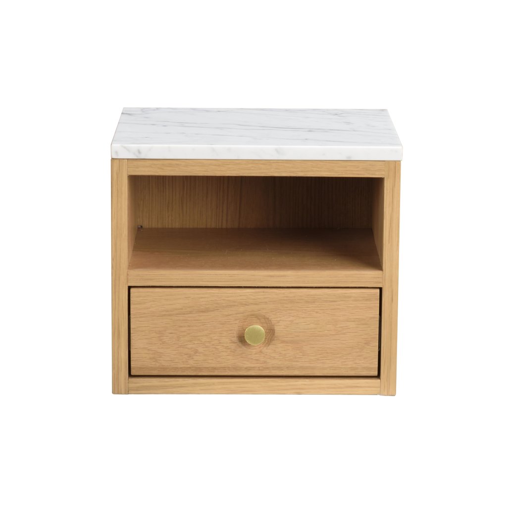 Designový noční stolek WHITMORE od švédského designového výrobce ROWICO. Elegantní noční stolek nebo také nástěnná police je vyrobena z lakovaného dubového dřeva. Stolek má desku z bílého mramoru a zásuvku s krásnou úchytkou v mosazné barvě. Perfektně se bude hodit do předsíně či ložnice. Noční stolek má jednu zásuvku, která nabízí velmi praktický úložný prostor. Doplňte stolek dalším nábytkem od výrobce ROWICO pro dokonalý interiér.