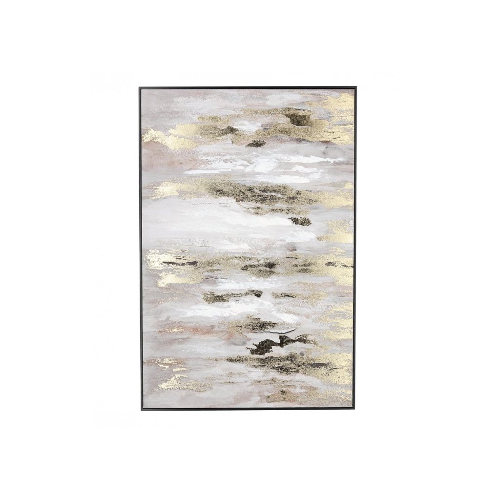 Nádherná malba na plátno HANNES od italského výrobce stylového nábytku BIZZOTTO. Nádherný obraz mísí šedé, bílé a zlaté tóny malby. Obraz je vyhotoven na plátně a dřevěném podkladu s velkými rozměry 60x90 centimetrů. Celý obraz je uložen v plastovém rámu v černém provedení. Velmi krásná a stylová dekorace nejen do moderních prostor vašeho domova.