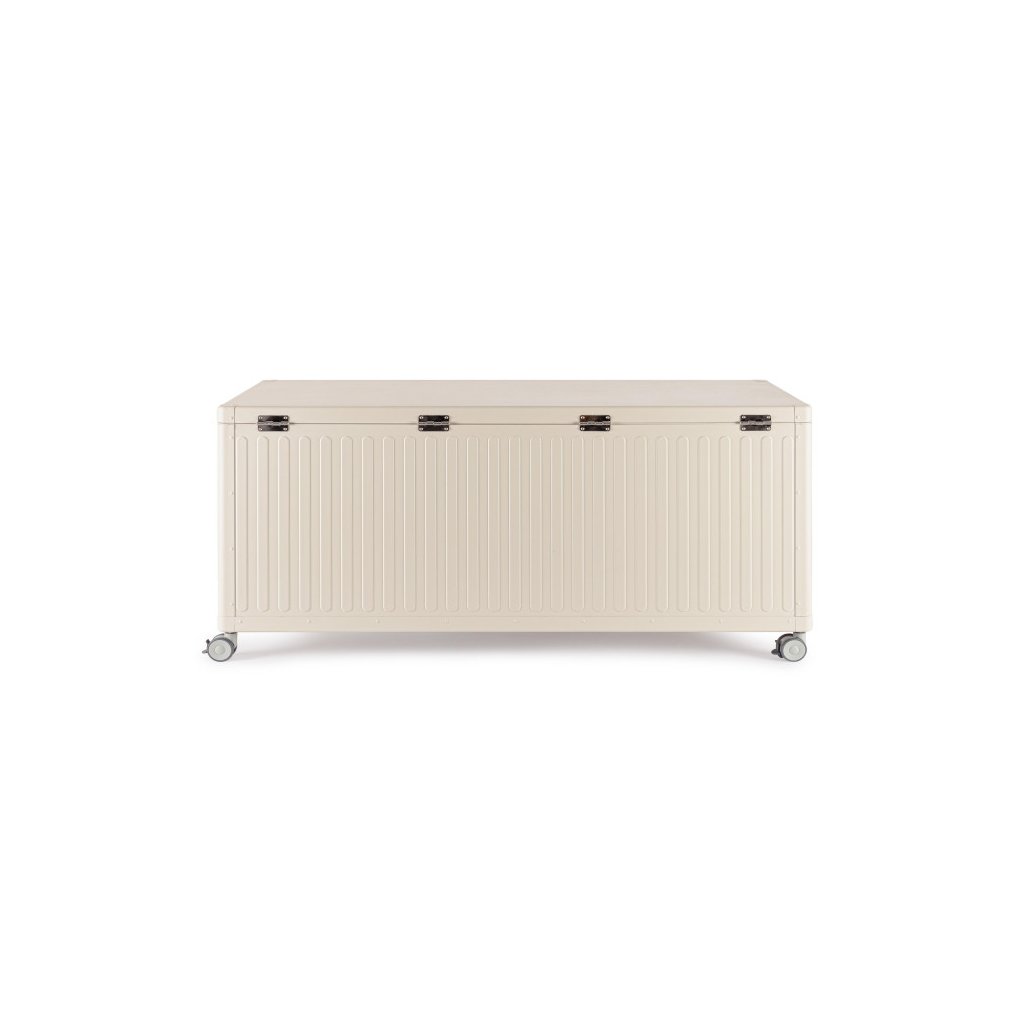 Zahradní úložný box OCEAN od italského výrobce stylového nábytku BIZZOTTO. Tento parádní kovový box v béžové barvě, má spoustu úložného prostoru pod víkem s rukojetí, jehož otevírání usnadňují dva plynové písty. Rukojeť je hliníková s aplikací PVC fólií s 3D efektem dřeva. Box můžete jednoduše přemisťovat díky praktickým uzamykatelným kolečkům. Perfektně sladíte s dalšími prvky z řady OCEAN, například ve stylové pergole. K dostání i v dalších barvách a velikostech.
