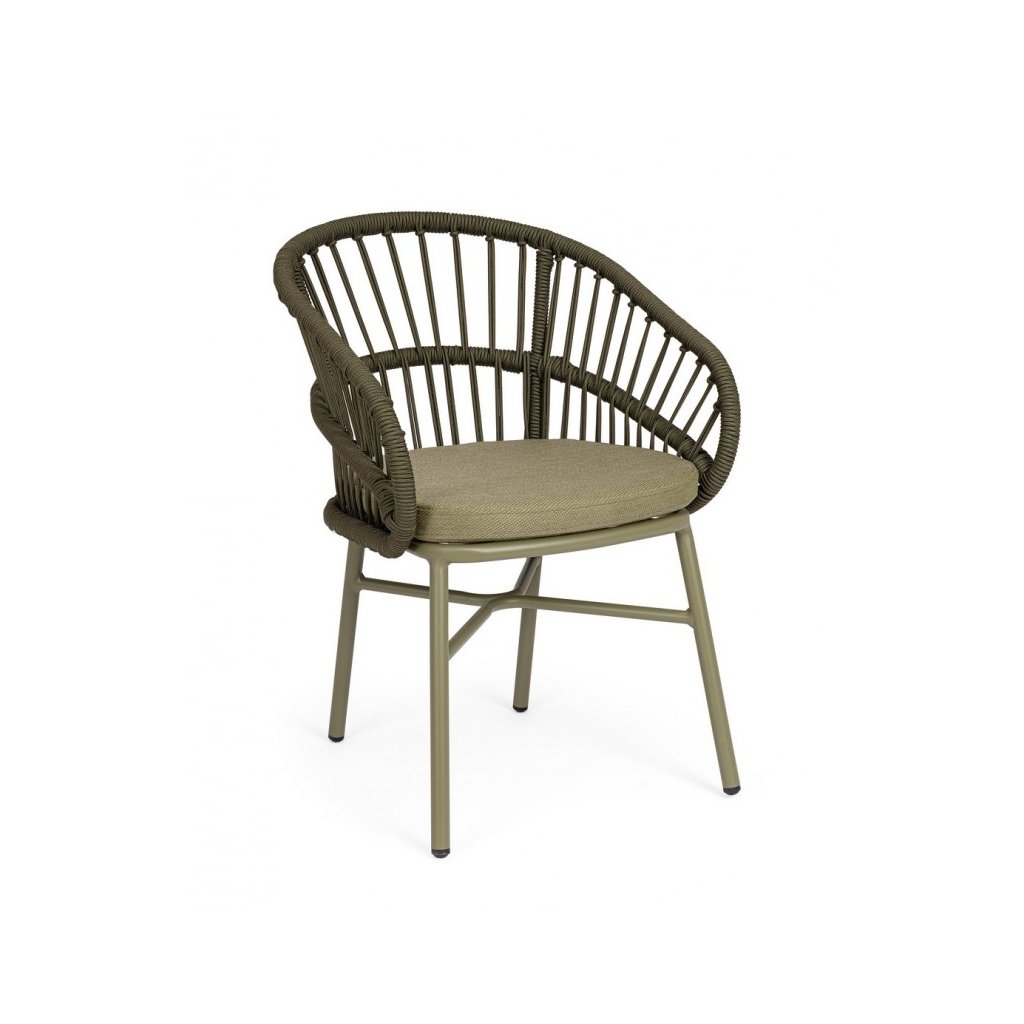 Designová venkovní židle ODIVELAS od italského výrobce stylového nábytku BIZZOTTO. Židli ODIVELAS tvoří konstrukce z hliníku, který obklopuje krásný výplet z polypropylenového vlákna, které je určeno pro venkovní účely. Kovová konstrukce zajišťuje židli maximální stabilitu a nosnost. Odnímatelný sedák je pak z voděodolného olefinu. Židle je plně stohovatelná. ODIVELAS je velmi krásné, unikátní a luxusní jídelní křesílko.
