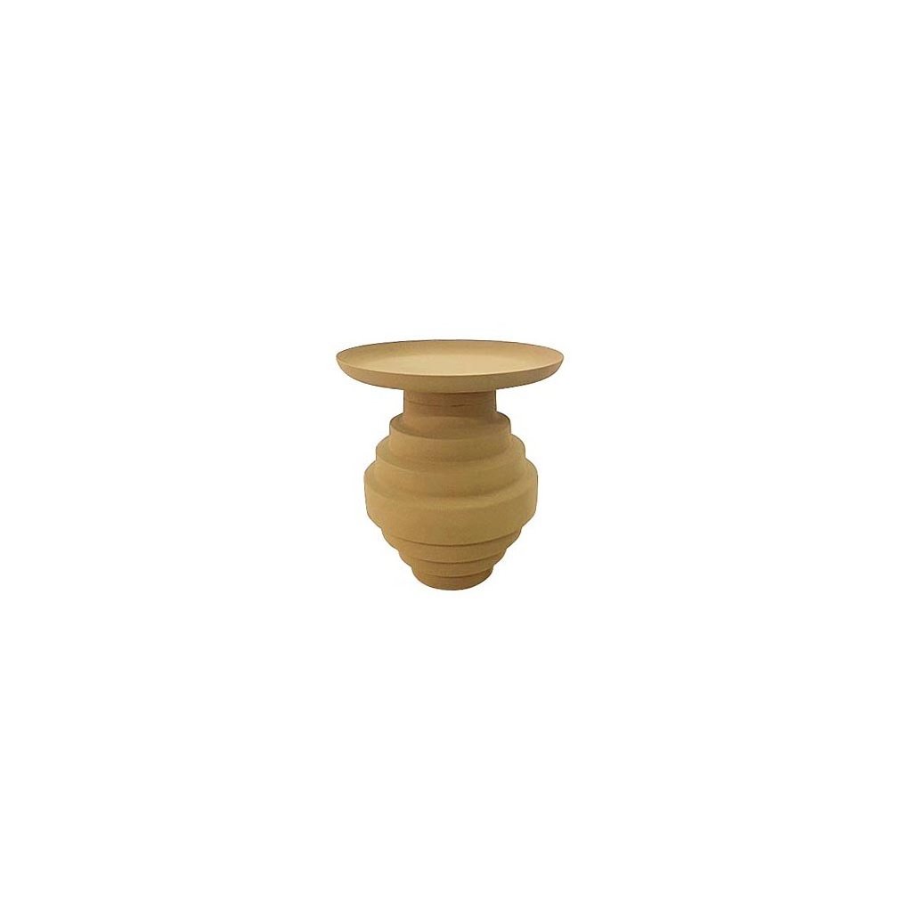 Designový odkládací stolek AMBA od italského výrobce stylového nábytku BIZZOTTOStolek AMBA má jednu centrální nohu s rozšiřujícím se a následně zužujícím se obvodem a vrchní desku s průměrem 35,5 cm. AMBA je vyroben z oceli a je práškovaný ve žluté barvě. Ideální do vašeho obývacího pokoje hned vedle pohovky pro odložení kávy nebo čaje.