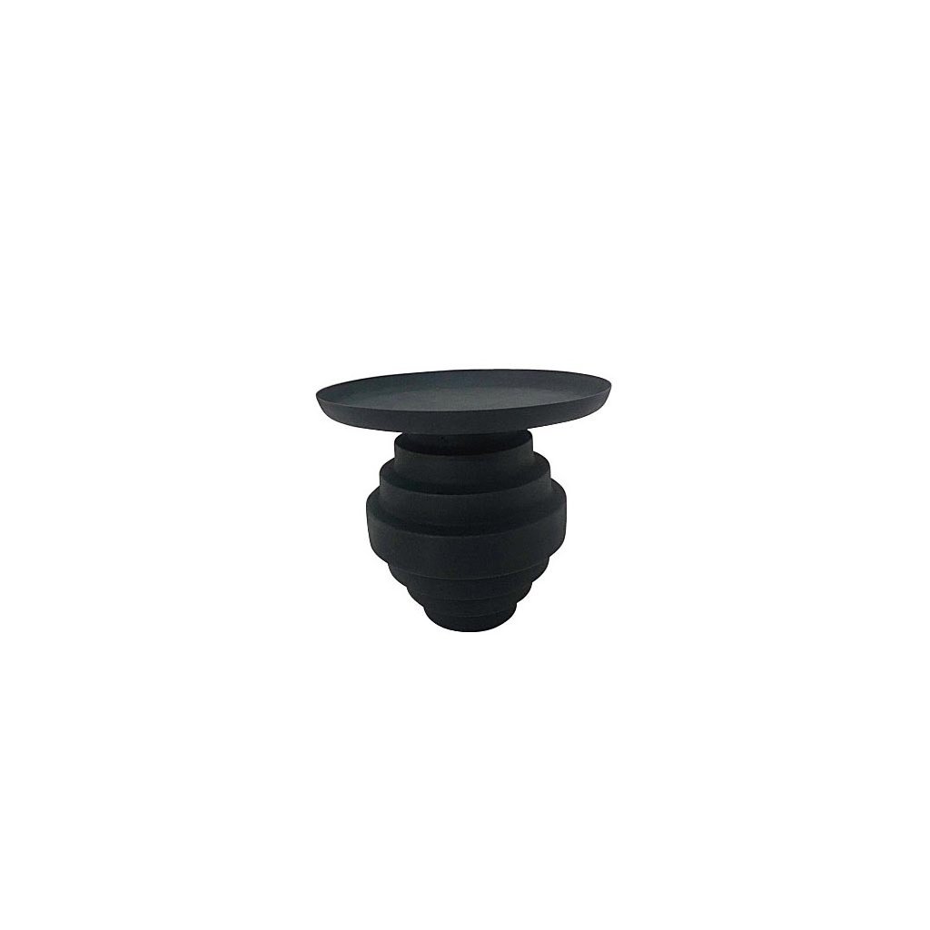 Designový odkládací stolek AMBA od italského výrobce stylového nábytku BIZZOTTOStolek AMBA má jednu centrální nohu s rozšiřujícím se a následně zužujícím se obvodem a vrchní desku s průměrem 40 cm. AMBA je vyroben z oceli a je práškovaný v černé barvě. Ideální do vašeho obývacího pokoje hned vedle pohovky pro odložení kávy nebo čaje.