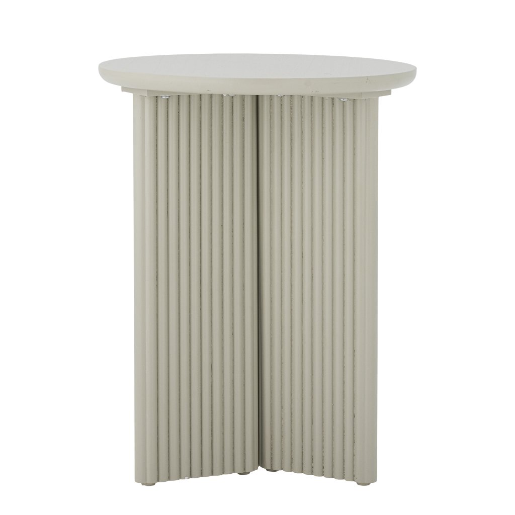 Odkládací stolek EDITH od dánského výrobce nádherného nábytku BLOOMINGVILLE. EDITH představuje moderní a nadčasový kus nábytku, který se vyznačuje svým elegantním provedením ze dřeva jedle a MDF. Jeho kulatá deska v kombinaci s drážkovaným podstavcem dodává stolku jedinečný charakter a jemný architektonický prvek. Díky svému lehkému a vzdušnému vzhledu je EDITH ideální jako odkládací stolek vedle pohovky, noční stolek u postele nebo jako dekorativní prvek do rohu místnosti. Jemná bílá barva působí svěže a čistě a přináší do prostoru pocit klidu a harmonie.