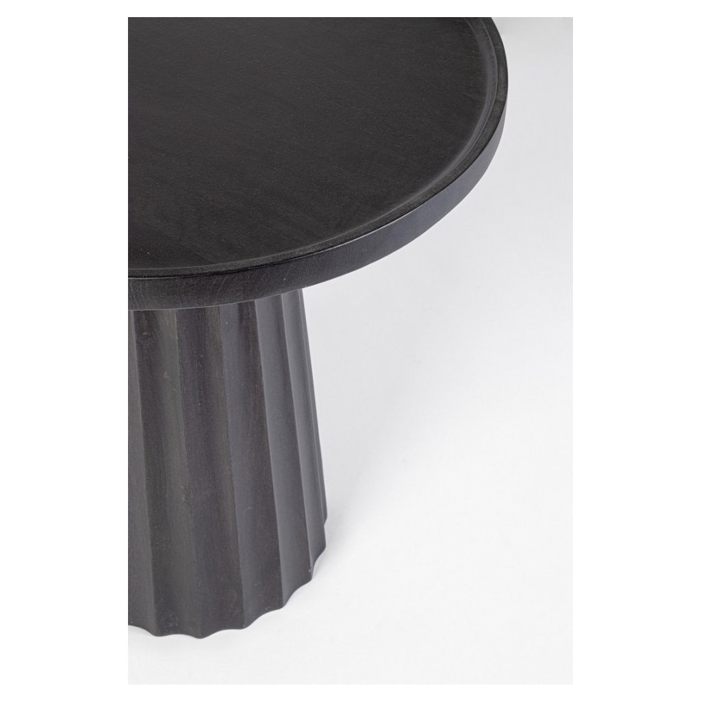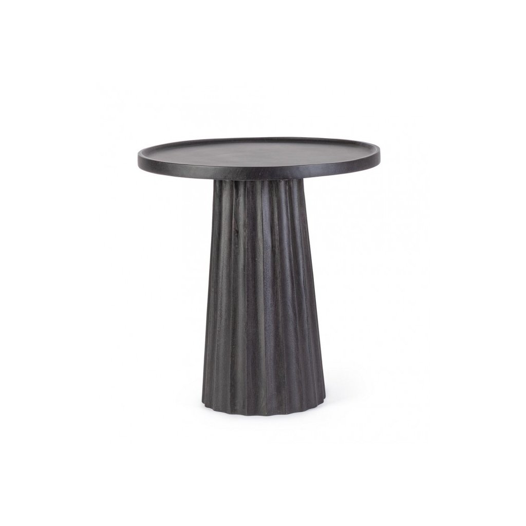 Odkládací stolek ORISSA od italského výrobce nádherného nábytku BIZZOTTO. Stolek s výškou 49 cm má 1 centrální nohou se zužujícím se obvodem a vrchní desku s průměrem 46 cm. Je vyroben z mangového dřeva lakovaném v černé barvě. Ideální do vašeho obývacího pokoje třeba hned vedle pohovky pro odložení kávy nebo čaje.