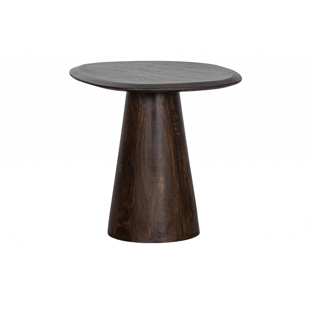 Odkládací stolek POSTURE od holandského výrobce nádherného nábytku BePureHome. Stolek s výškou 51 cm má 1 centrální nohou se zužujícím se obvodem a vrchní desku s průměrem 60 cm. Je vyroben z mangového dřeva ve tmavé barvě. Ideální do vašeho obývacího pokoje třeba hned vedle pohovky pro odložení kávy nebo čaje.