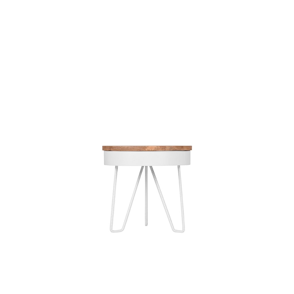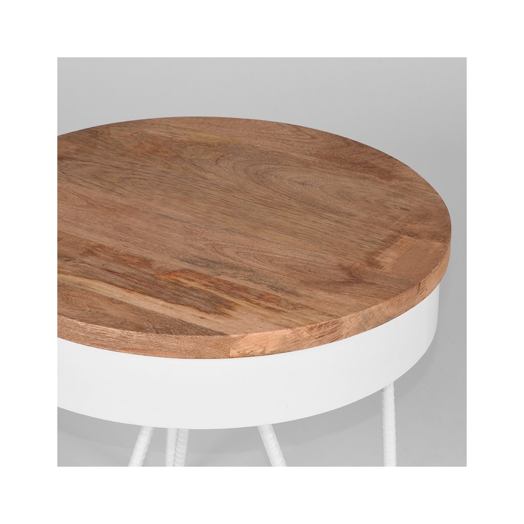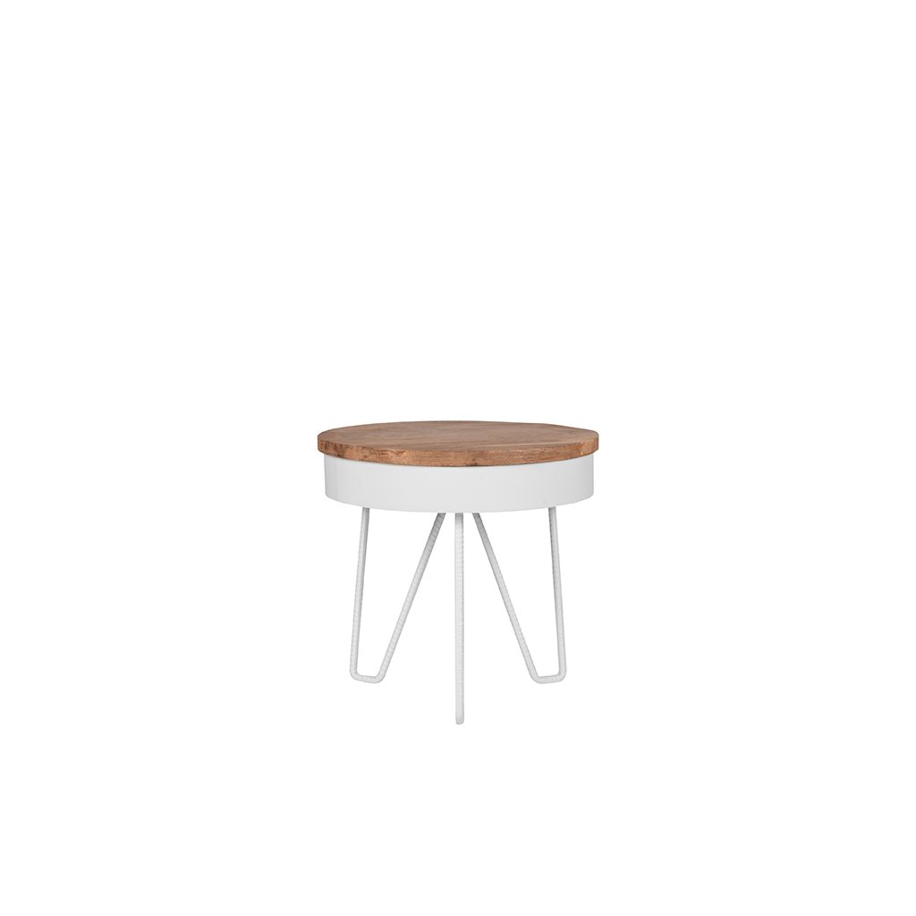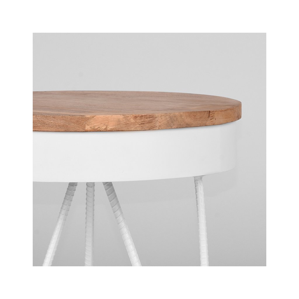 Stylový odkládací stolek SARAN od holandského výrobce industriálního nábytku LABEL51. Konstrukci stolku SARAN tvoří tři dvojnohy z vroubkovaného kovu, díky kterým má stolek maximální stabilitu a nosnost. Na nohy navazuje vrchní kulatý kovový rám stolku, na němž je posazena kulatá deska z masivního mangového dřeva. SARAN je šikovný, ručně vyrobený stůl z těch nejkrásnějších materiálů.