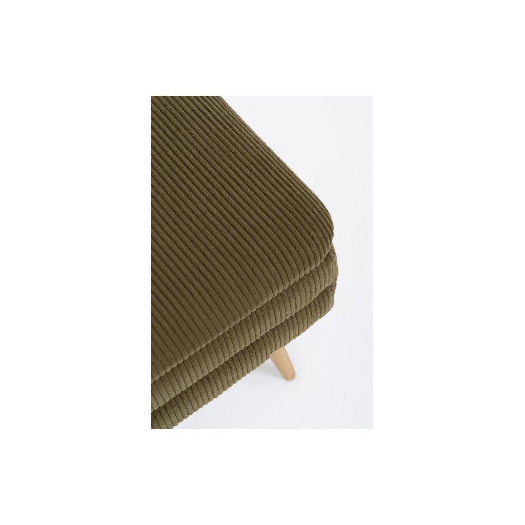 Designový podnožka, nebo i taburet OLGA, od italské firmy kvalitního nábytku BIZZOTTO, v zeleném provedení s ocelovými nohy s efektem dřeva. Potah je z polyesteru v krásné, moderní, zelené barvě ve stylu manšestru. Podnožka OLGA má praktický úložný prostor pod sedákem.