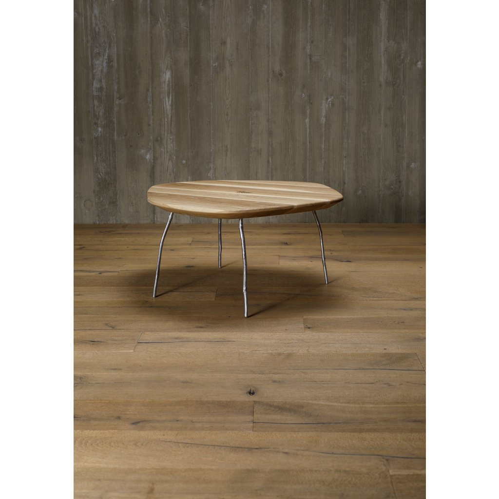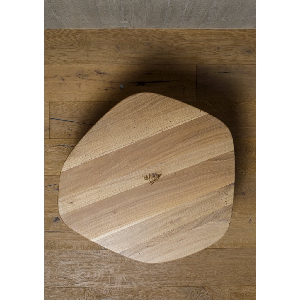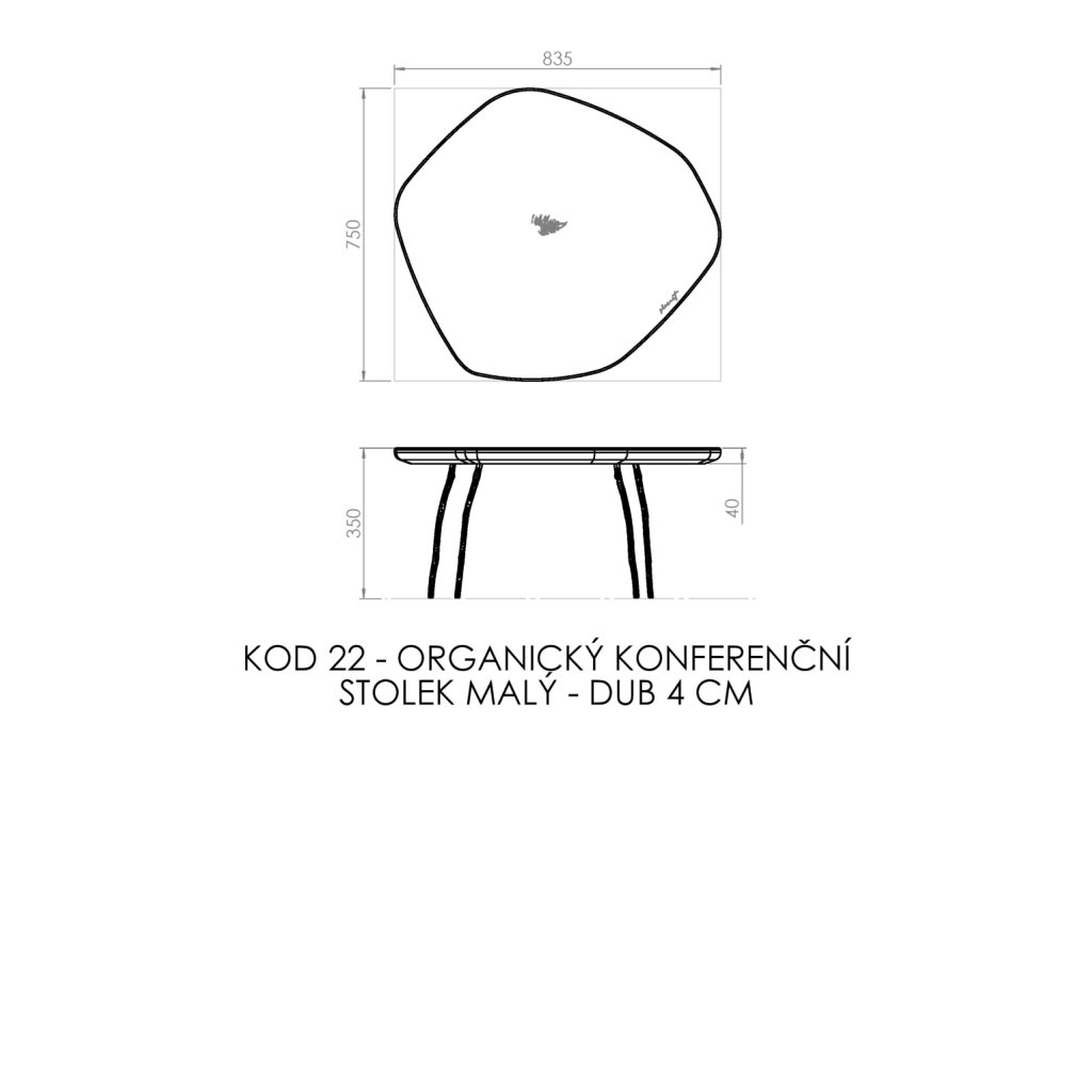 Unikátní organický konferenční stolek ZLESART od českého výrobce unikátních produktů ZLESART. Deska stolku má nepravidelný tvar, průměr mezi 75 a 83 cm a pyšní se vypáleným logem a motivem 3 nádherných kapradin uprostřed stolu. 4 nohy stolku jsou speciálně odlity z hliníku ve tvaru větviček stromů a finálně nastříkány barvou podle preference zákazníka. K dodání tedy v rozdílných barvách centrální nohy nebo jiného dřeva na jídelní desce.