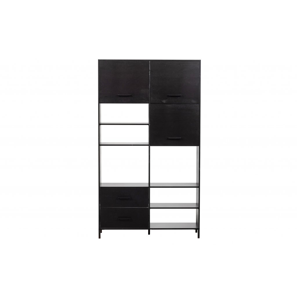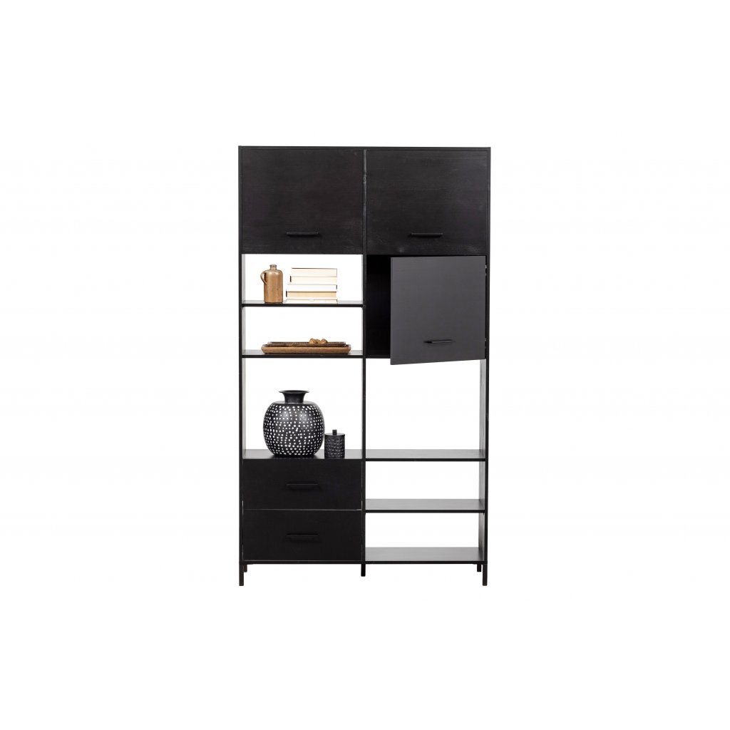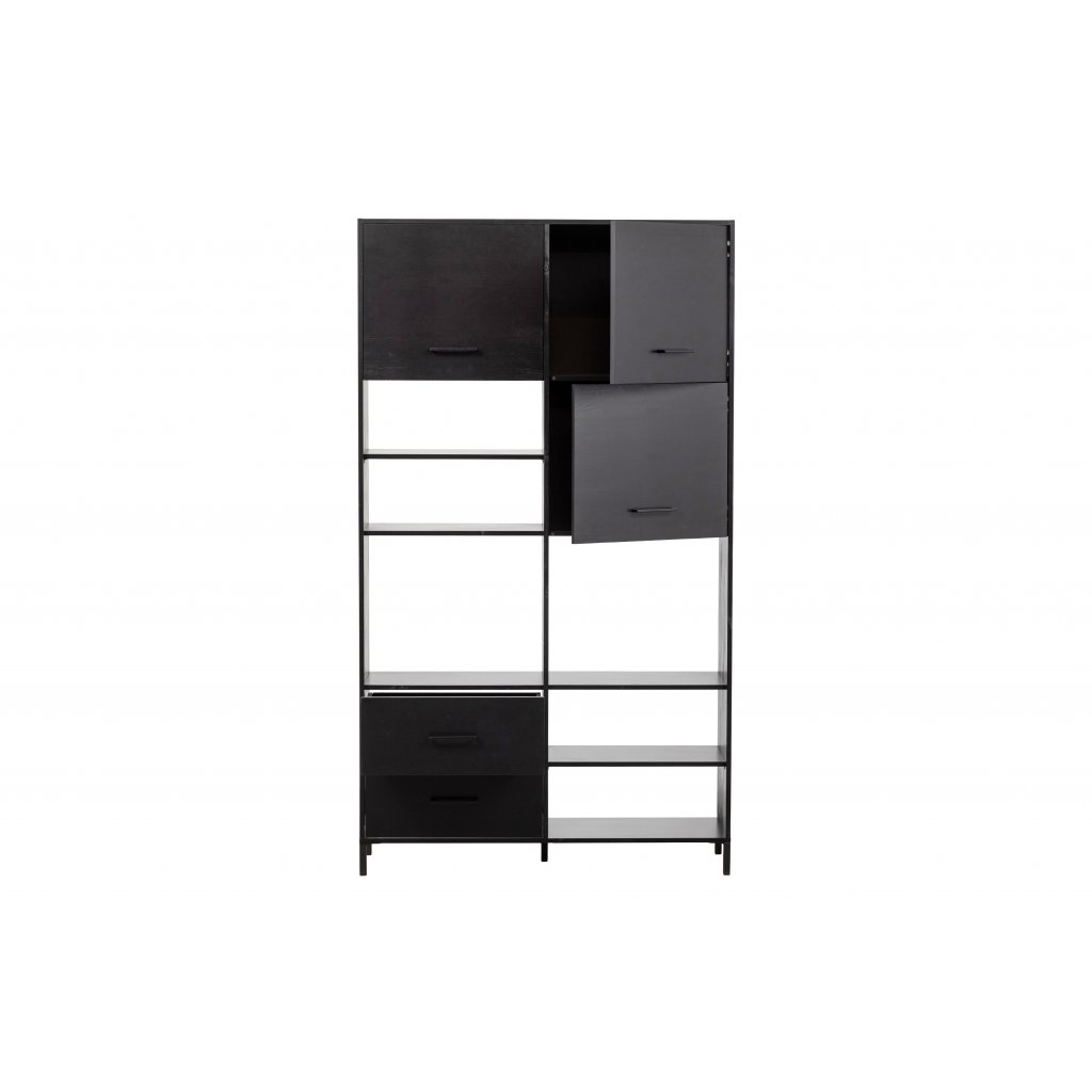 Stylová otevřená šatní skříň AIKO od holandského výrobce designového nábytku WOOOD. AIKO je stylový kus nábytku z borovicového dřeva v černé barvě. V horní části jsou 3 police s otevírající se dveřmi do strany a dvě police, které jsou otevřené. V dolní části se pak nachází 1 police s otevírající se dvířky do strany a 2 police, které jsou otevřené. Prostřední část poskytuje dvě větší police na různé druhy oblečení či dekorace do vaší domácnosti. Tato šatní skříň poskytuje mnoho úložného prostoru. Dřevo se pyšní certifikátem FSC, značící ekologickou a k přírodě šetrnou těžbu dřeva z obnovitelných zdrojů.