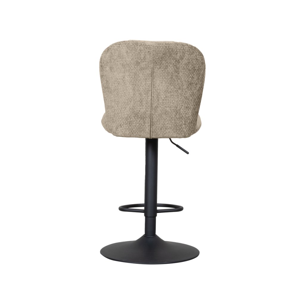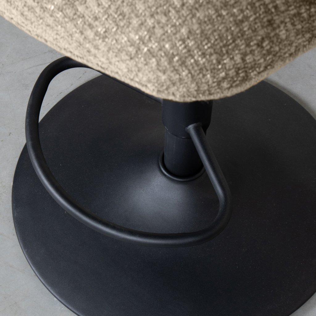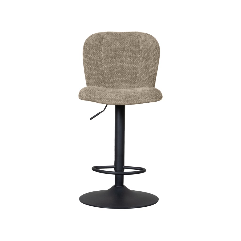 Stylová otočná barová židle VINO od holandského výrobce industriálního nábytku LABEL51. Židle je tvořena základnou z černého kovu. Sedák a opěrka jsou potaženy velmi kvalitní Elite látkou v hnědém provedení. Barová židle se stane dokonalým doplňkem k různým stylům interiéru. VINO je velmi praktická díky možnosti nastavení výšky. Díky tomu se perfektně hodí pod každý barový stůl!