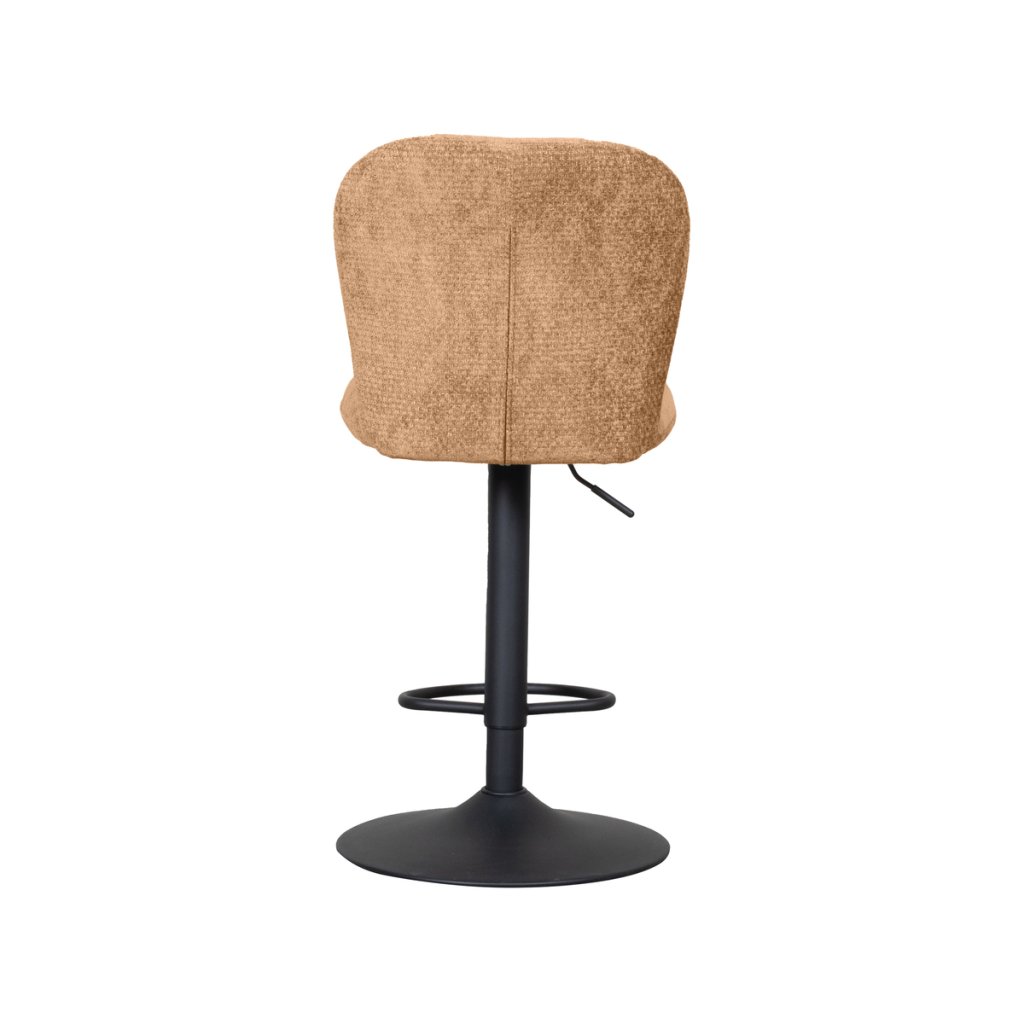 Stylová otočná barová židle VINO od holandského výrobce industriálního nábytku LABEL51. Židle je tvořena základnou z černého kovu. Sedák a opěrka jsou potaženy velmi kvalitní Elite látkou v koňakovém provedení. Barová židle se stane dokonalým doplňkem k různým stylům interiéru. VINO je velmi praktická díky možnosti nastavení výšky. Díky tomu se perfektně hodí pod každý barový stůl!