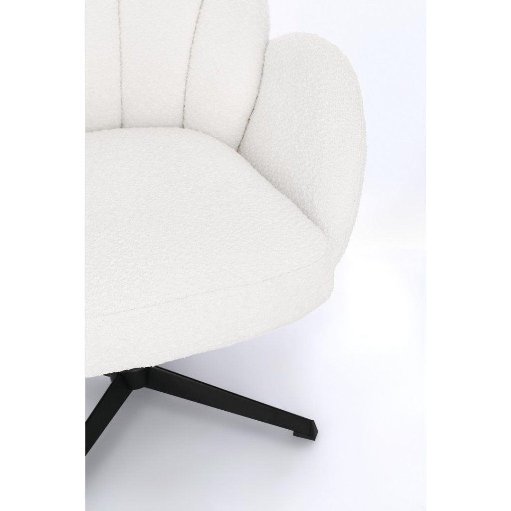 Otočné křeslo CHLOE od italské firmy stylového nábytku BIZZOTTO. Křeslo CHLOE tvoří kovový rám s povlakem z polyesteru naplněný polyuretanovou pěnou. Sedák má krásné sněhově bílé provedení. Ocelová otočná základna s epoxidovým práškovým nátěrem v černé barvě zajišťuje maximální stabilitu, nosnost a pevnost. Krásné křeslo představuje ladné spojení klasické elegance a neotřelého designu.
