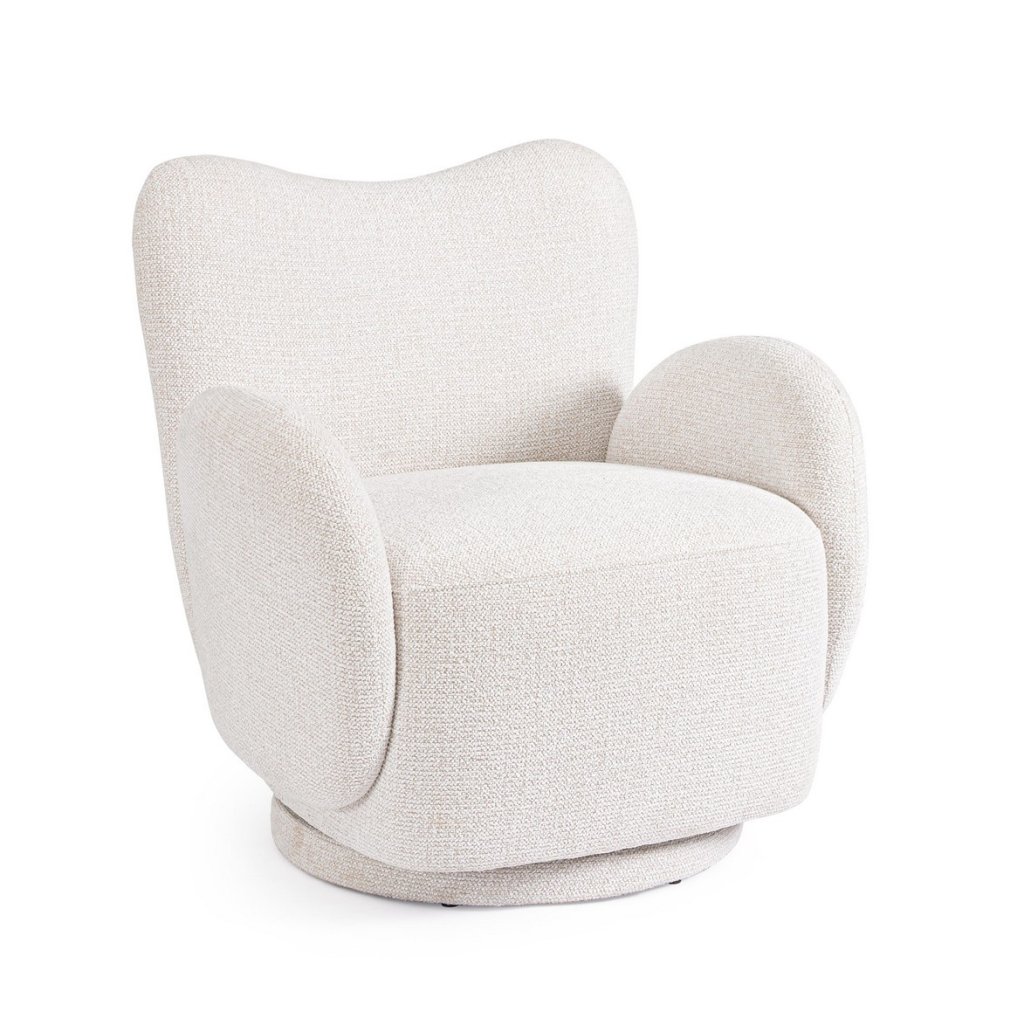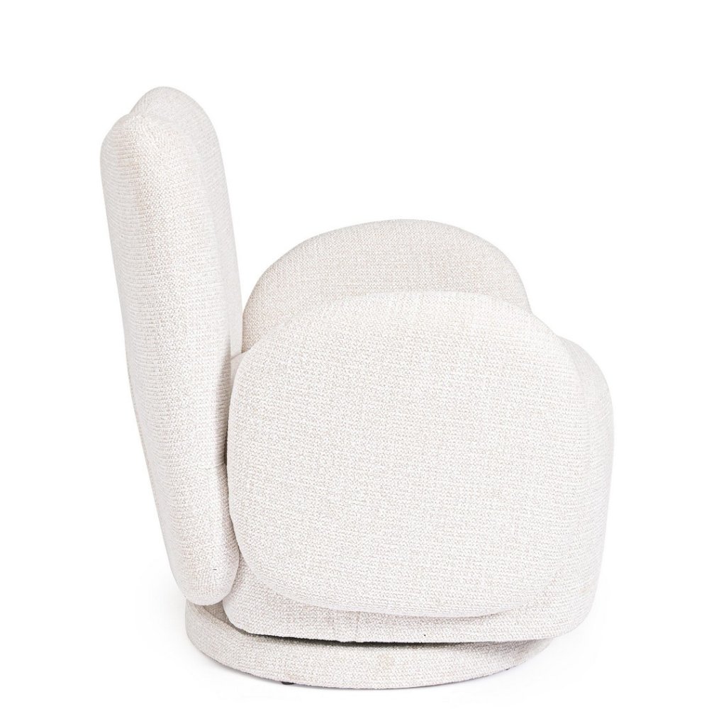 Otočné křeslo HARPER od italského výrobce kvalitního nábytku BIZZOTTO. Sedák, opěradlo i otočná základna jsou celočalouněné tkanou látkou v bílém provedení. Opěradla mají velmi zajímavé řešení, které vás zaručeně zaujme na první pohled. HARPER je zajímavý kousek, který skvěle zapadne do každého interiéru. Je dostupná i v další barevné kombinaci.