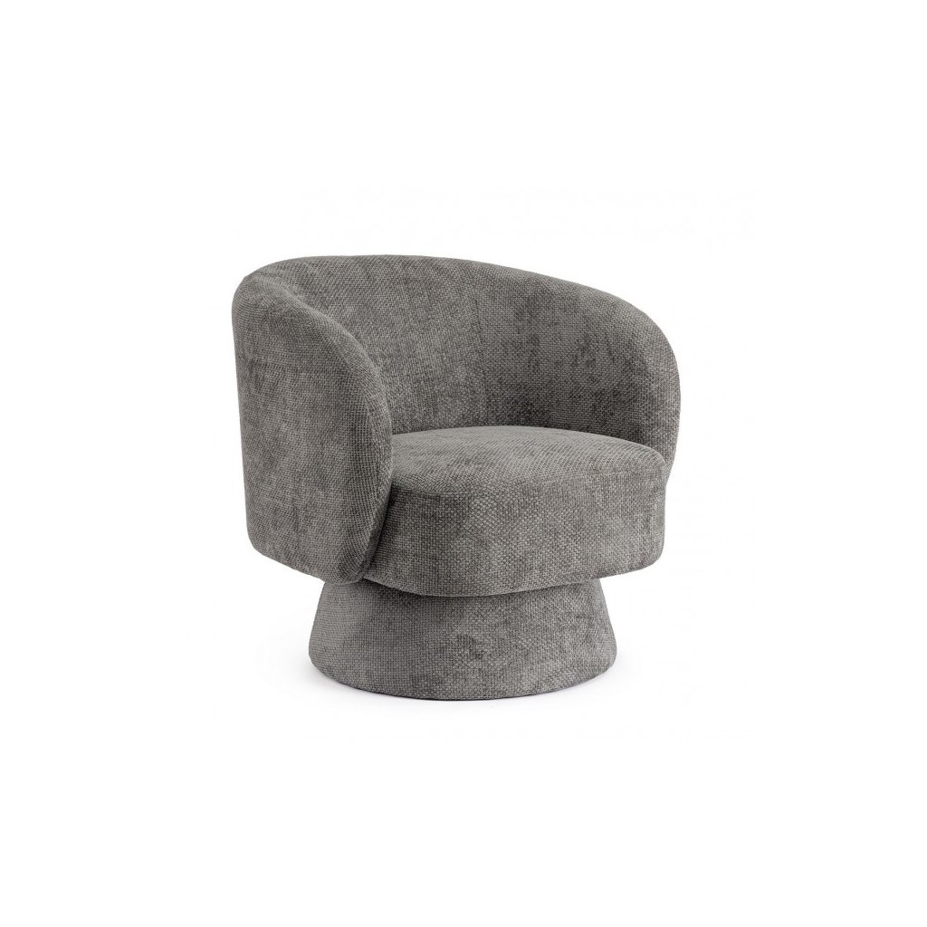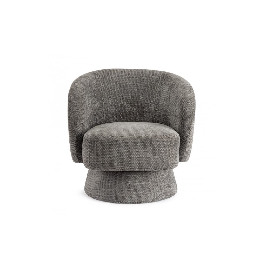 Designové křeslo JULIENNE od italského výrobce stylového nábytku BIZZOTTO. Krásné otočné křeslo JULIENNE má přívětivý zaoblený tvar s velmi vysokým komfortem sezení. Sedák a základna jsou celé potaženy hrubě tkanou tmavě šedou látkou ze 100% polyesteru.