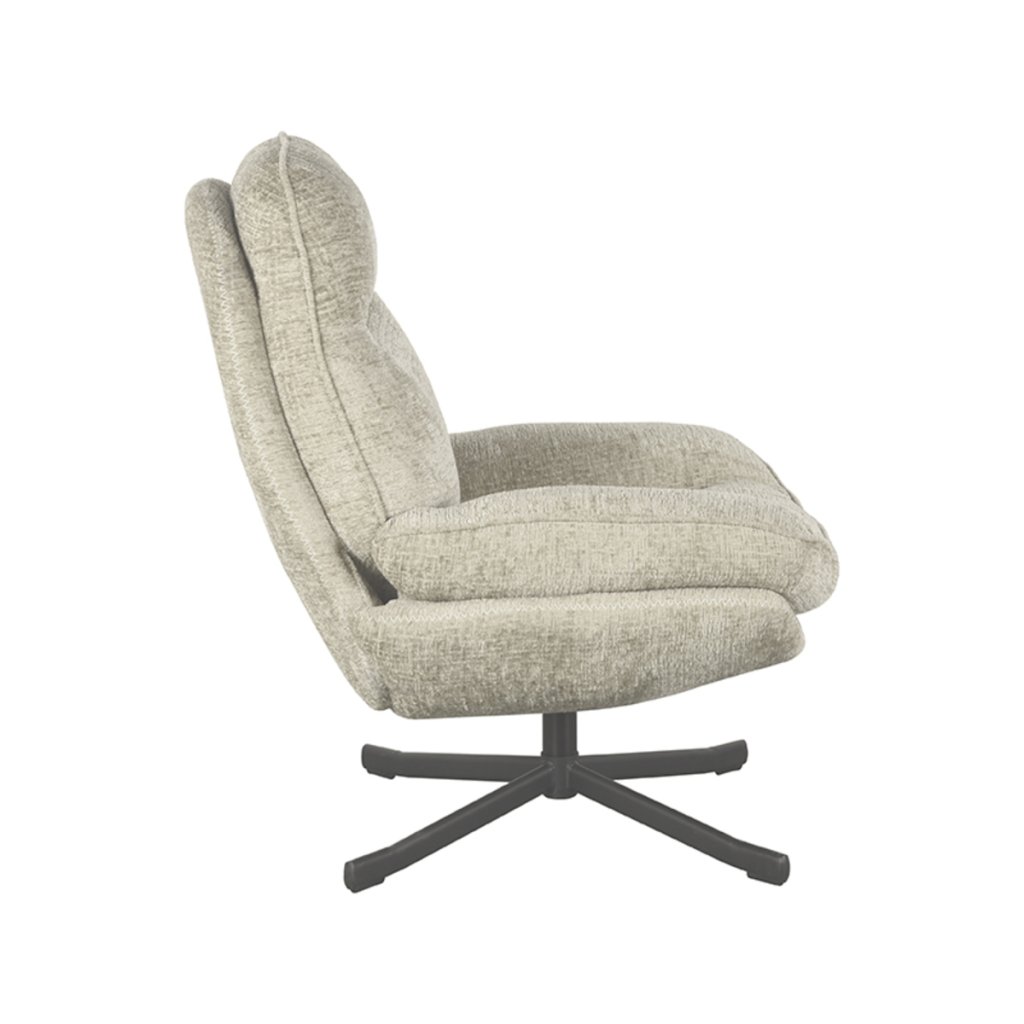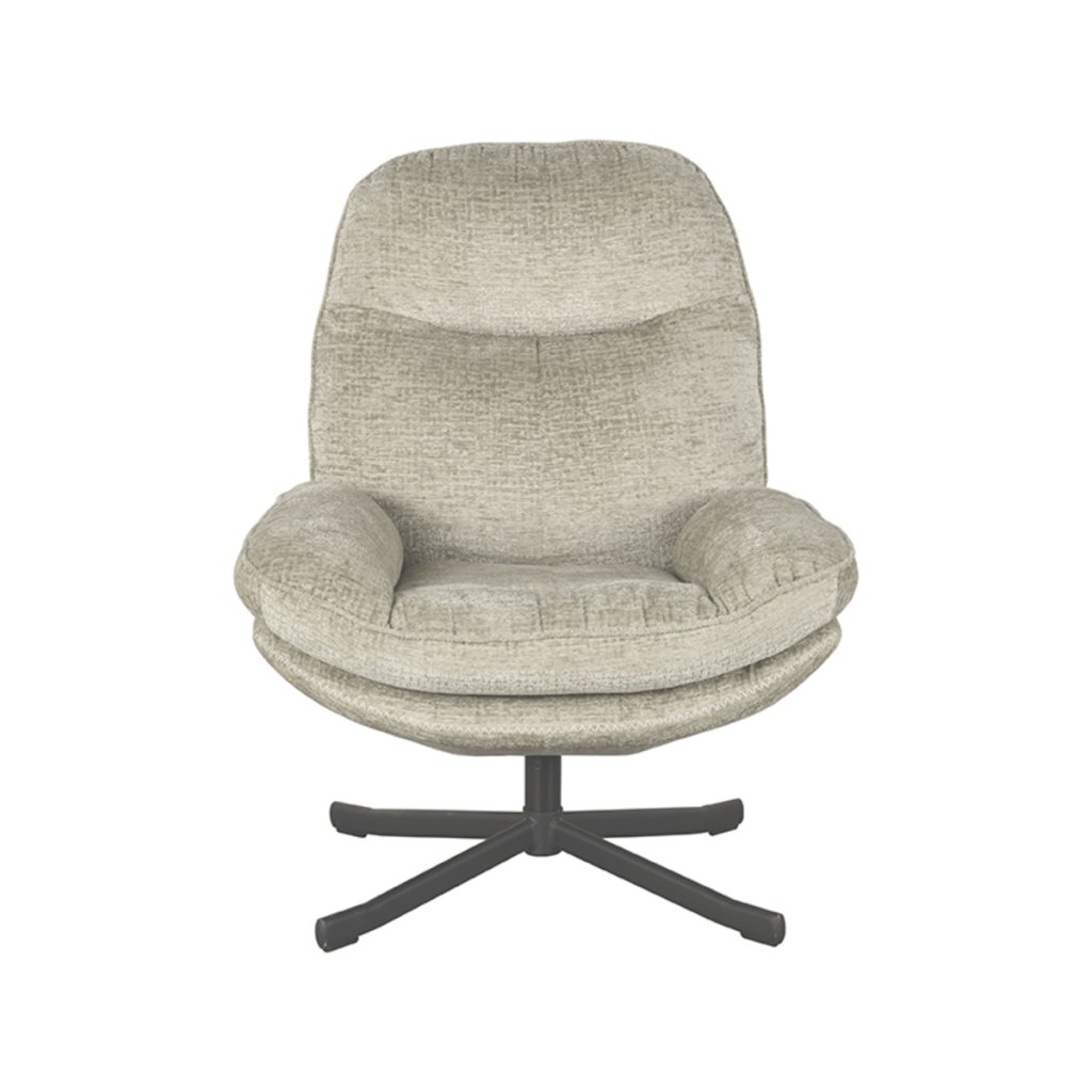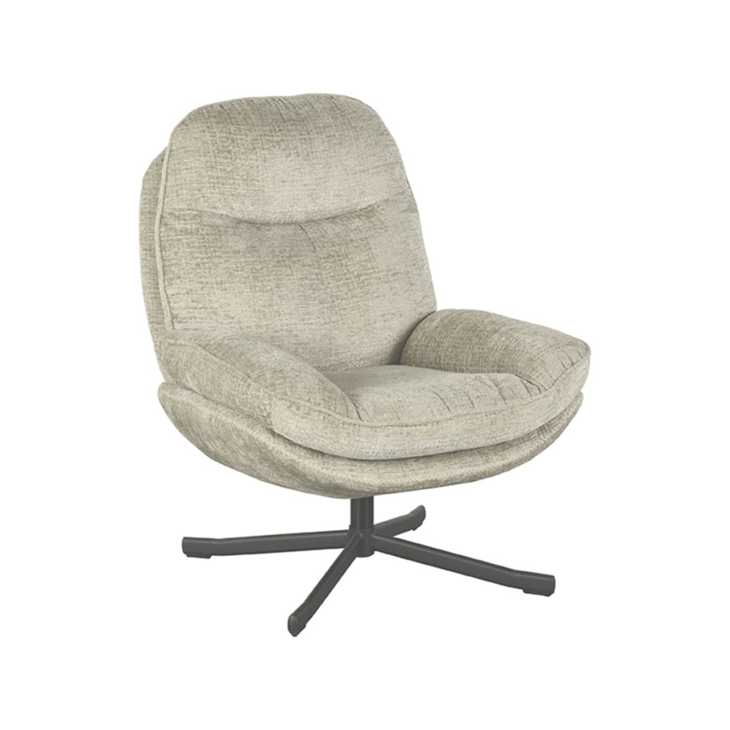 Stylové křeslo NOEL od holandského výrobce industriálního nábytku LABEL51. Křeslo NOEL je luxusní a velmi kvalitní křeslo, vyrobené z potahu příjemné světlé látky. Základnu tvoří černá kovová centrální noha a výplň sedáku tvoří velmi kvalitní pěna, která zajišťuje nádherné, velmi pohodlné sezení. Jedná se o křeslo, které lze otáčet kolem dokola o 360 stupňů, takže si ho zamiluje každý!
