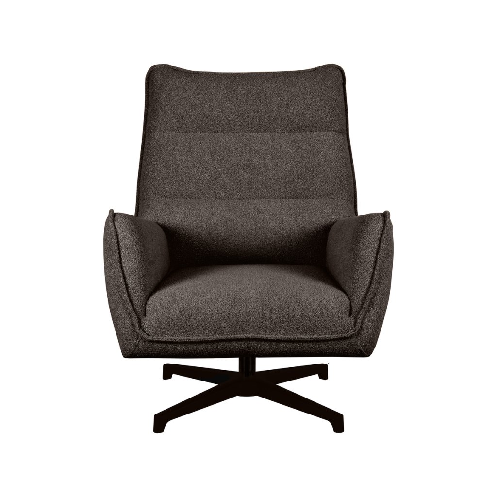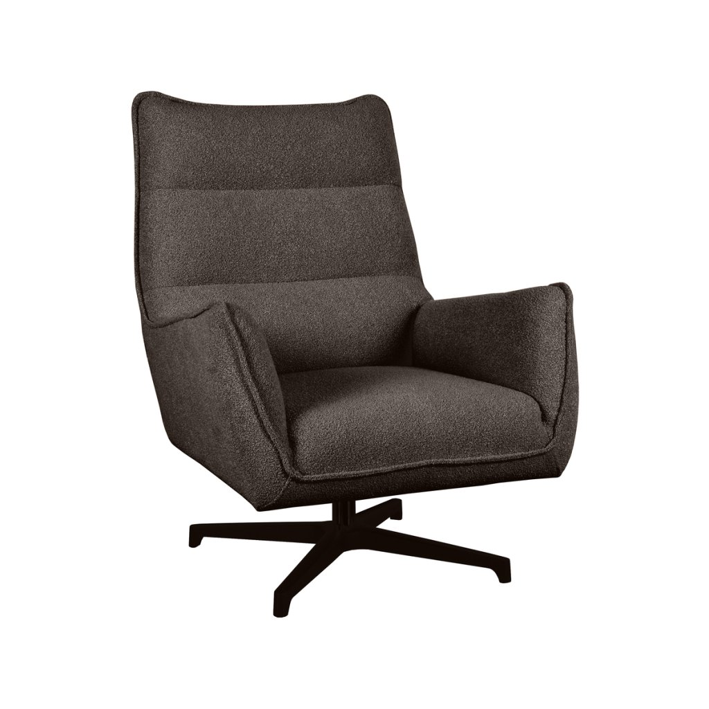 Stylové křeslo RODIA od holandského výrobce industriálního nábytku LABEL51. Křeslo RODIA je v provedení sedáku z velice kvalitní tkaniny bouclé a základnu tvoří pevný kovový rám v černé barvě. Sedadlo a opěradlo tohoto luxusního křesílka jsou v hnědém odstínu. Křeslo má otočnou vlastnost, která je velkou výhodou. RODIA je zkrátka ideální volbou pro vaší relaxaci.