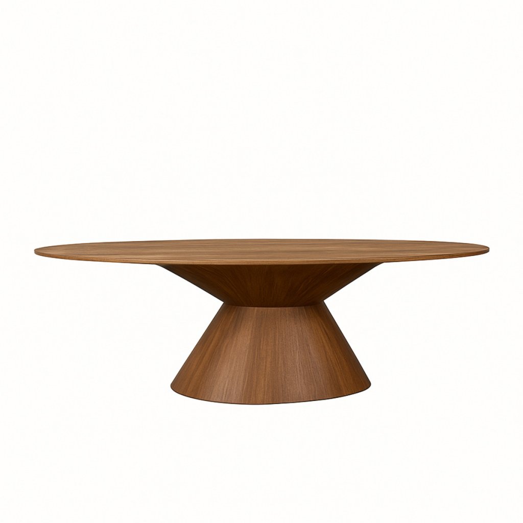 Designový jídelní stůl JAGGER od holandského výrobce kvalitního nábytku LABEL 51. Stůl JAGGER je celý vyrobený z mangového dřeva v krásném hnědém provedení. Stůl je tvořen oválnou deskou s rozměry 240x110 cm a výraznou kónickou základnou, která dodává stolu moderní sochařský vzhled a stabilitu. JAGGER je perfektní stůl, který lehce zakomponujete do vašeho interiéru.