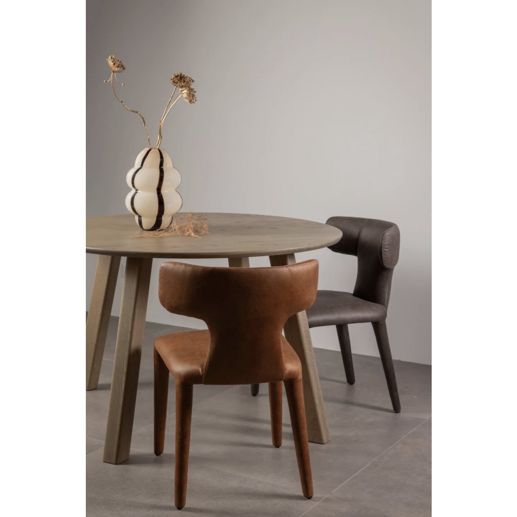 Stylová jídelní židle PERMIT od holandského výrobce kvalitního nábytku WOOOD. Židle se skládá ze sedáku, zadního opěradla a 4 spodních nohou, vše v potahu z umělé kůže v kombinaci polyesteru a bavlny v tmavě šedé barvě. Tvoří tak elegantní celek, který vám zajistí maximální pohodlí. V dostání i v další barvě.