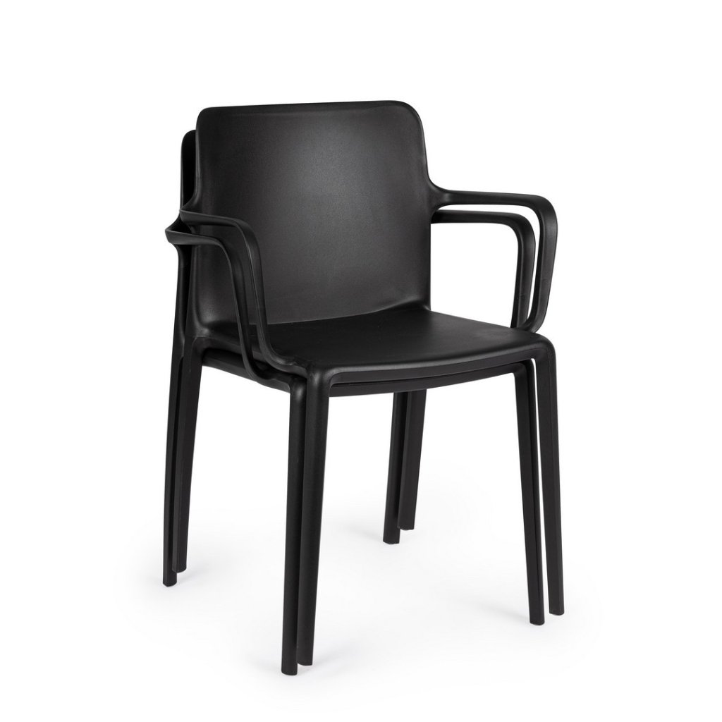 Designová a multifunkční plastová židle CHLORIS od italského výrobce stylového nábytku BIZZOTTO.  CHLORIS je ideální židle pro venkovní i vnitřní účely v klasickém a velmi žádaném provedení s područkami. Je vyrobena z plastu v černé barvě a je odolná vůči UV záření. Židle CHLORIS je lehce stohovatelná. Parádní pro každou terasu či balkón. Není nutná montáž, což ocení nejeden z vás.