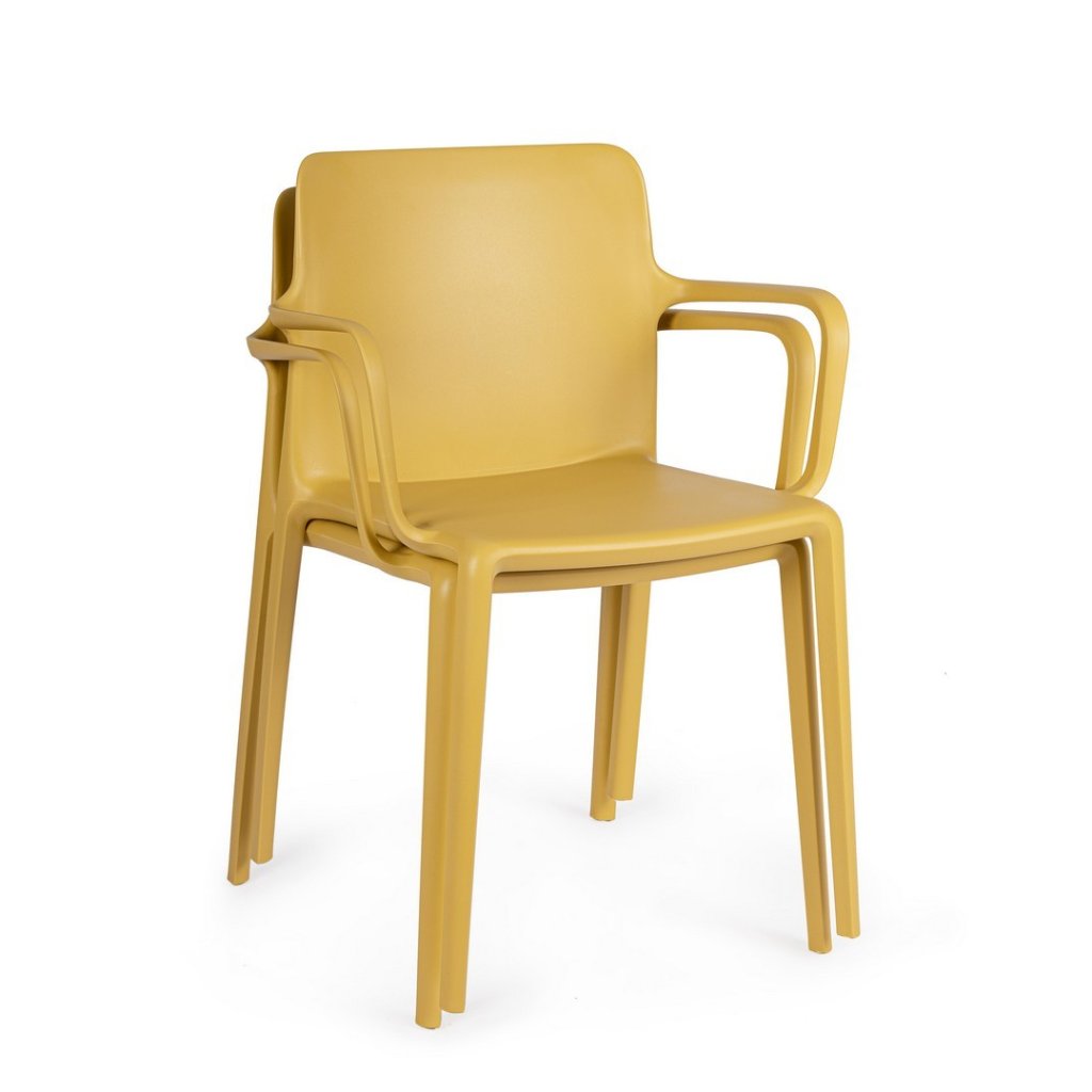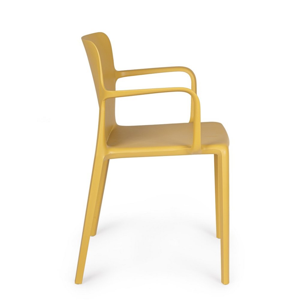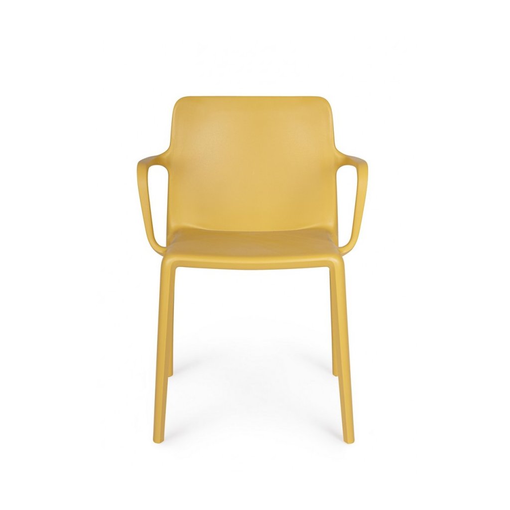 Designová a multifunkční plastová židle CHLORIS od italského výrobce stylového nábytku BIZZOTTO.  CHLORIS je ideální židle pro venkovní i vnitřní účely v klasickém a velmi žádaném provedení s područkami. Je vyrobena z plastu ve žluté barvě a je odolná vůči UV záření. Židle CHLORIS je lehce stohovatelná. Parádní pro každou terasu či balkón. Není nutná montáž, což ocení nejeden z vás.
