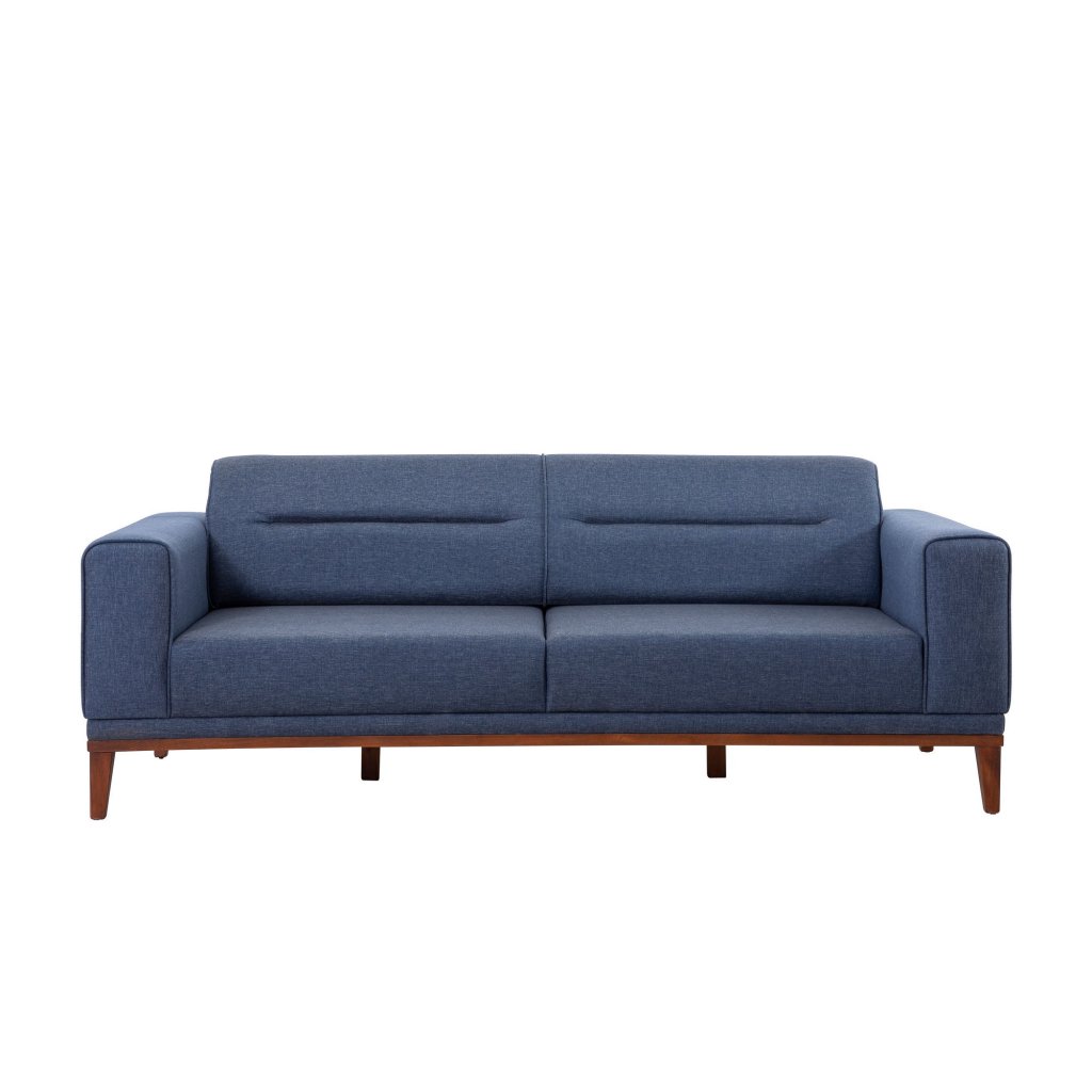 Pohovka LIONES je čalouněná látkou v tmavě modrém odstínu a výborně tak doplní moderně zařízené interiéry, do kterých vnese útulnou atmosféru. LIONES vynikne ve světlých i tmavých prostorech. Váš obývací pokoj perfektně doladíte nábytkem ze dřeva nebo s dřevěnými doplňky. Pohovka je k dostání také v dalších barevných kombinacích.