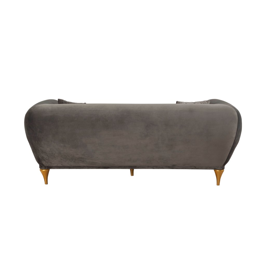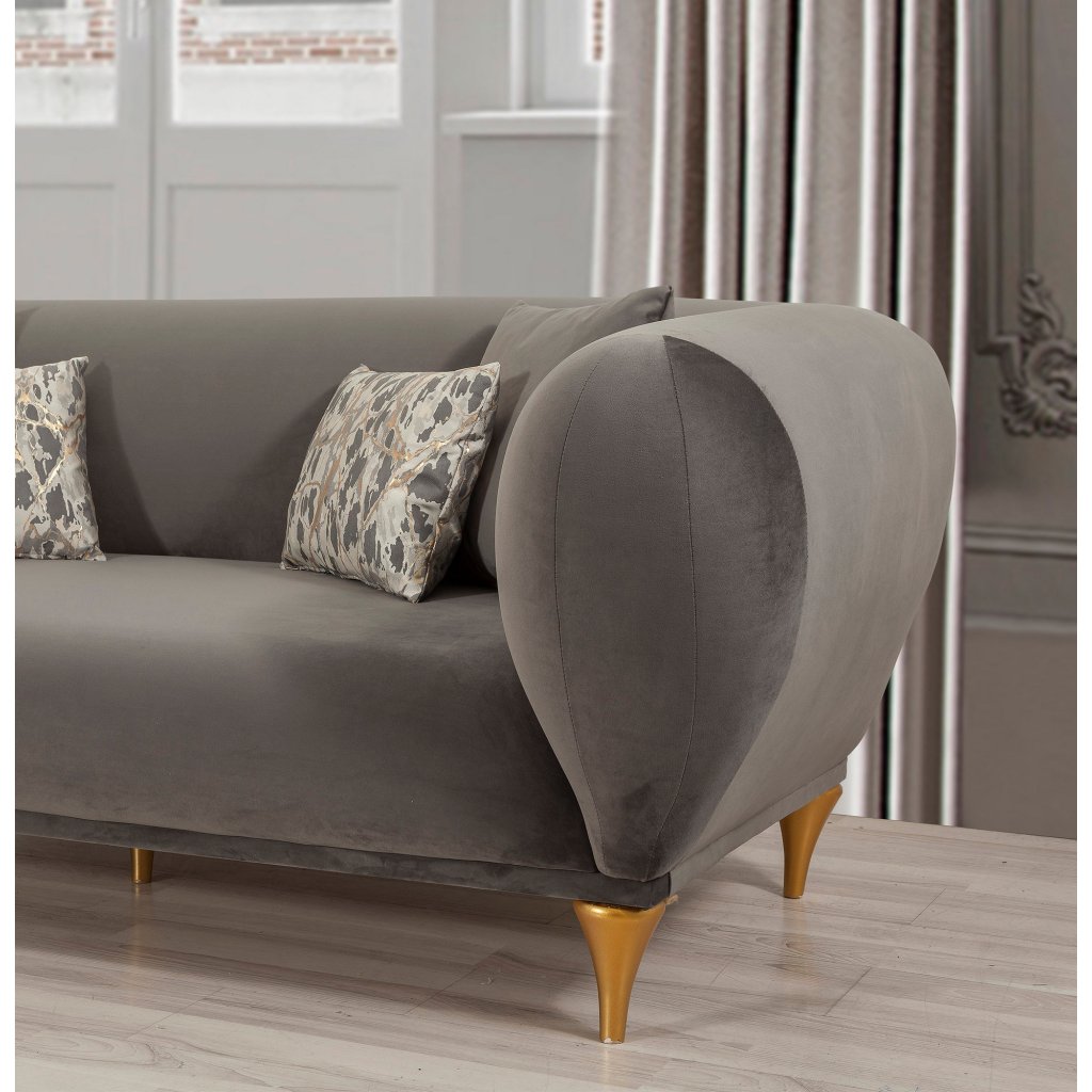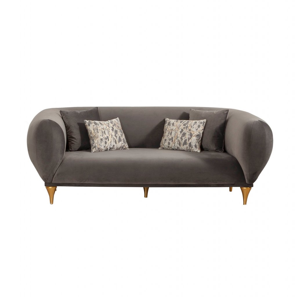 Stylová pohovka MEBLON od výrobce nábytku a pohovek Hanah Home. Pohovka MEBLON má konstrukcí z habru a topolového dřeva a stabilitu zajišťují zlatě lakované dřevěné nohy. Krásný a hebký 100% bavlněný potah v barvě antracitu pokrývá výplň z odolné pěny. Dominantou pohovky jsou robustní boky pohovky, nahrazující snížené područky.