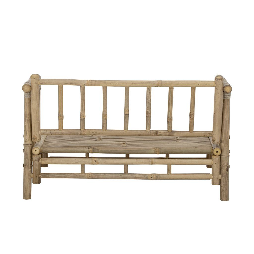 Stylová zahradní pohovka MINI SOLE od dánského výrobce nádherného nábytku BLOOMINGVILLE. Pohovka pro děti je kompletně vyrobena z bambusového dřeva a působí tak velmi exoticky a rustikálně. 4 nohy přecházejí v sedací prostor a opěrku a 2 područky, vše z tenkých kmenů bambusového dřeva. Krásně doplníte podobně laděným stolem či nábytkem ze stejné řady bambusového venkovního nábytku SOLE.