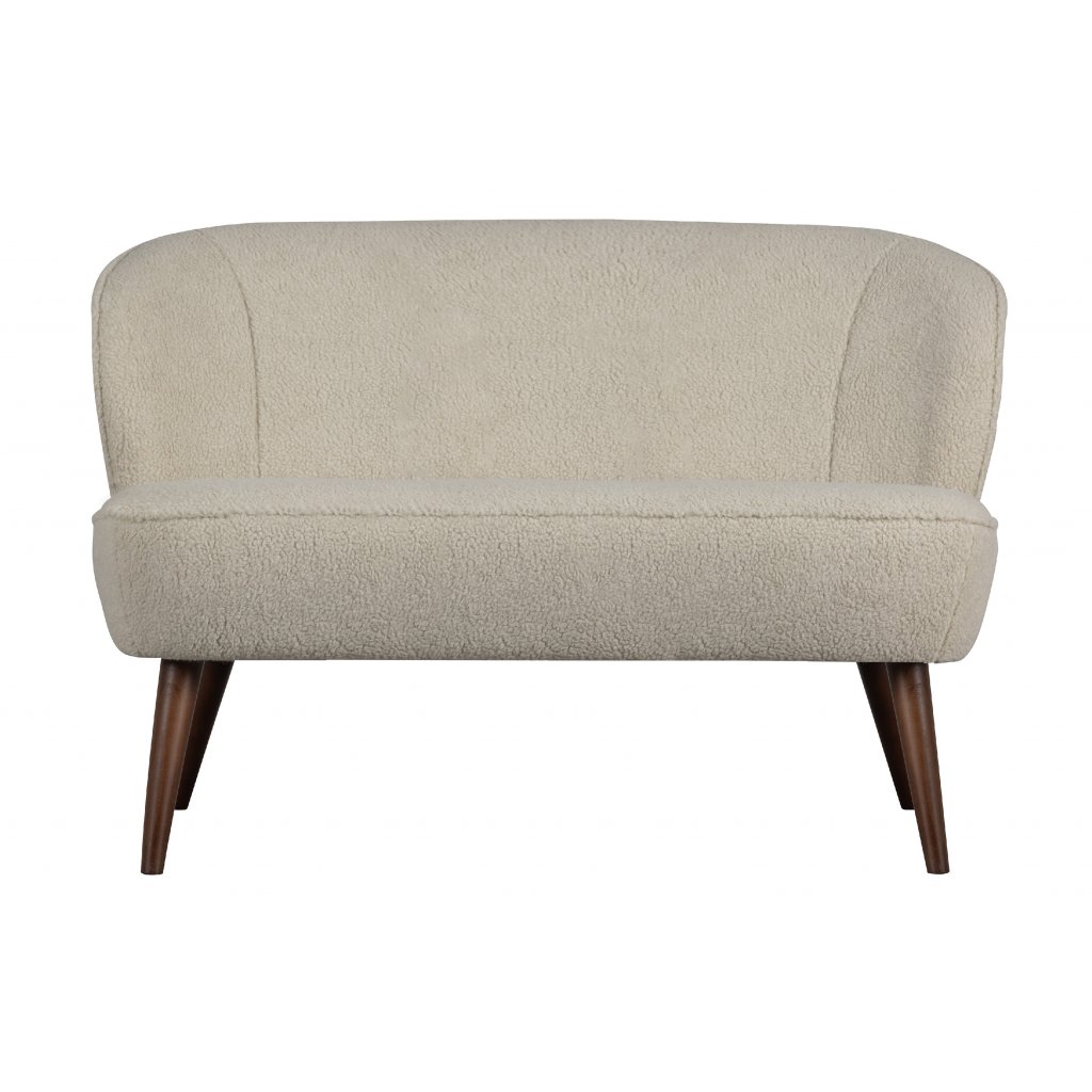 Stylová malá pohovka SARA od holandského výrobce kvalitního nábytku WOOOD vyrobená z extra jemné a kvalitní bílé látky. Skládá se z tmavých nohou masivního buku a sedáku s krásnou a jemnou bílou látkou, na které bude radost sedět.
