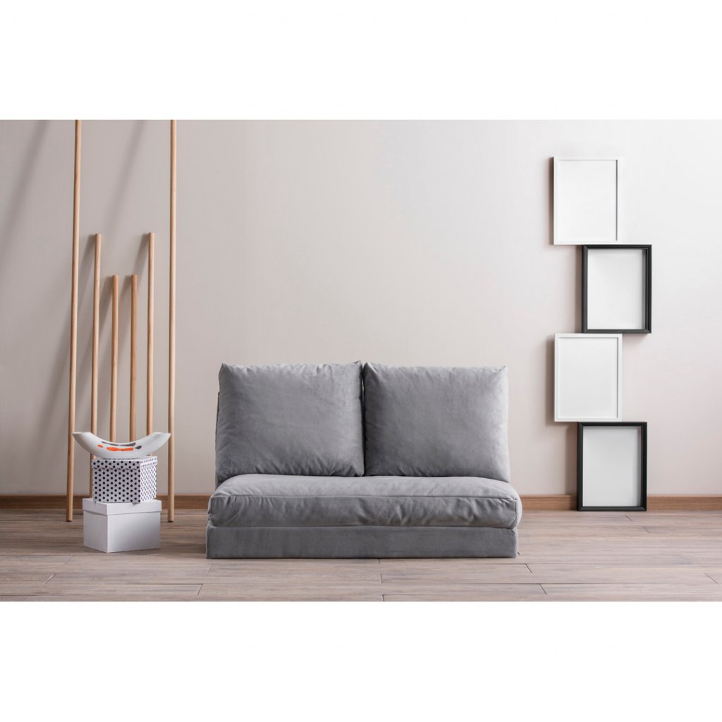 Stylová rozkládací futonová pohovka TAIDA od výrobce nábytku a pohovek Hanah Home. Pohovku TAIDA tvoří pevná kovová konstrukce potažená šedým polyesterovým potahem. Pohovka se rozloží a rázem získáte krásné místo na spaní pro vás nebo vaši návštěvu. Výhodou pohovky jsou polohovatelná záda a to do pěti úrovní. Rozkládací pohovka zaujme svým netradičním designem.