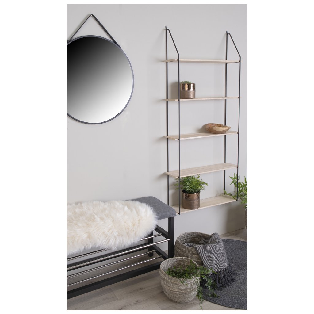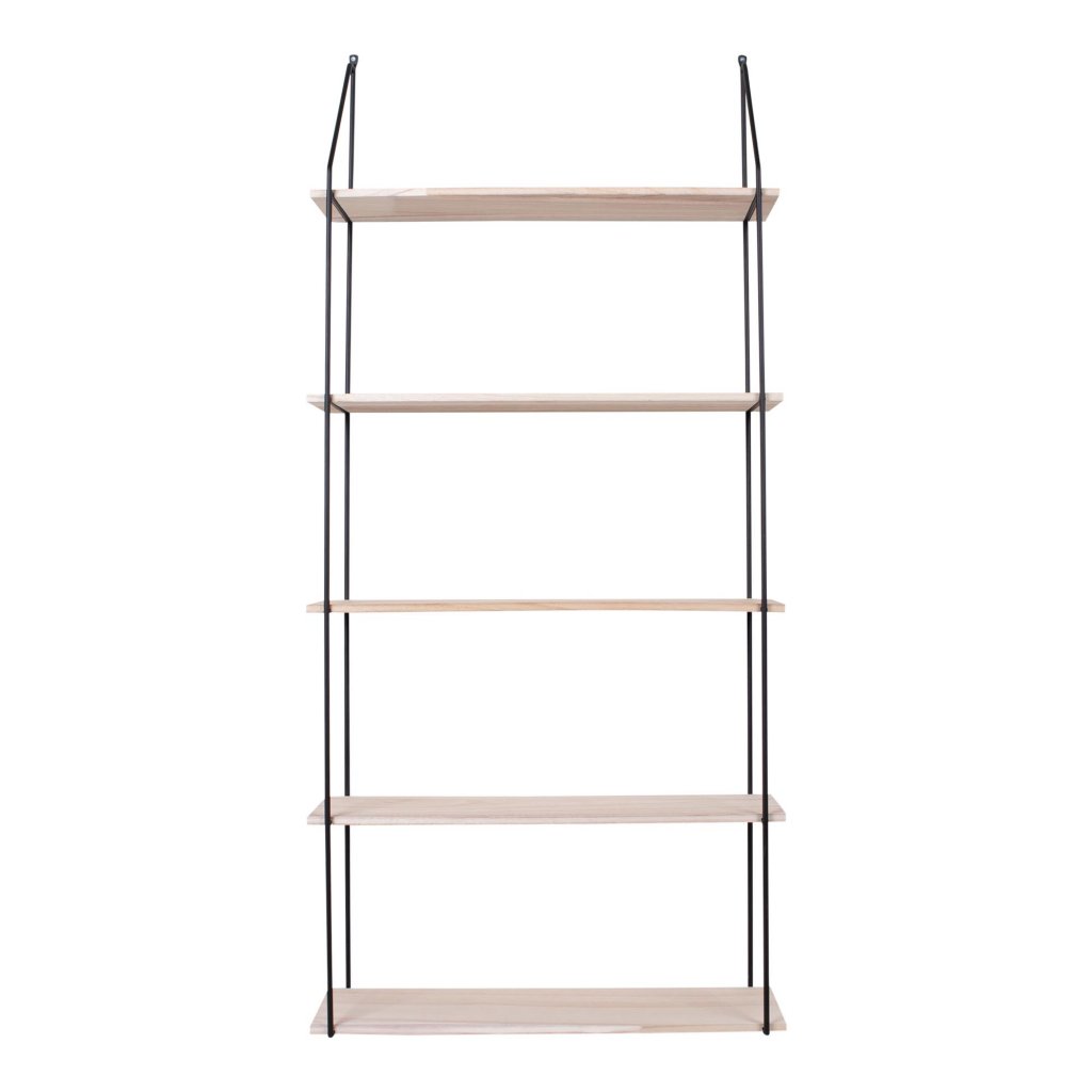 Designová policová knihovna EINDHOVEN od dánské značky nádherného skandinávského nábytku HOUSE NORDIC. Tento unikátní výrobek, policovou knihovnu na zeď, tvoří 2 spojnice z tenkého černého kovu po obou stranách, které se přichytí ke stěně a díky váze pouze 4,2 kg drží vše na stěně bez nutnosti kontaktu s podlahou. Knihovnu dotváří 5 polic z tenkých desek masivního dřeva Paulownia ve světlé barvě a vytváří tak vskutku krásný, jednoduchý, ale unikátní výrobek.
