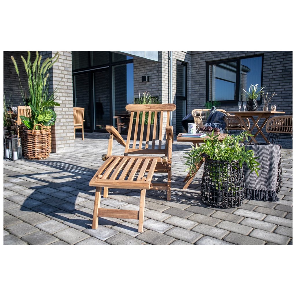 Stylové zahradní lehátko ARRECIFE od dánské značky nádherného skandinávského nábytku HOUSE NORDIC. Toto stylové lehátko ARRIETA je kompletně vyrobeno z masivního dřeva exotického teaku, který má ideální vlastnosti pro venkovní nábytek, díky čemuž má dlouhou životnost. Lehátko je složeno z opěrky, 2 područek a sedáku, který se v kloubech přesouvá dál v podnožku. Celkem je drženo na 6 nohách. Lehátko lze nastavit do 4 poloh pro vaše optimální slunění a relax.