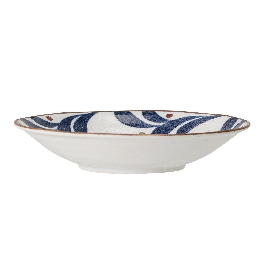 Stylová a krásná miska CAMELLIA od dánské značky nádherného nábytku BLOOMINGVILLE. CAMELLIA obsahuje krásnou misku s výškou 4,5 cm, která je zpracována z porcelánu s glazovaným povrchem v bílé barvě a střídajícími se vzory v modré barvě. Krásný zástupce severského designu, díky kterému bude jakékoliv jídlo zase o něco příjemnější.
