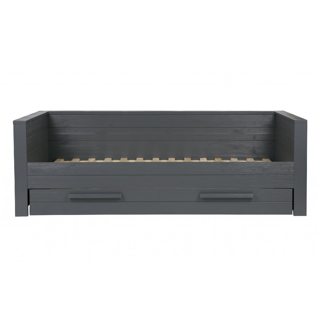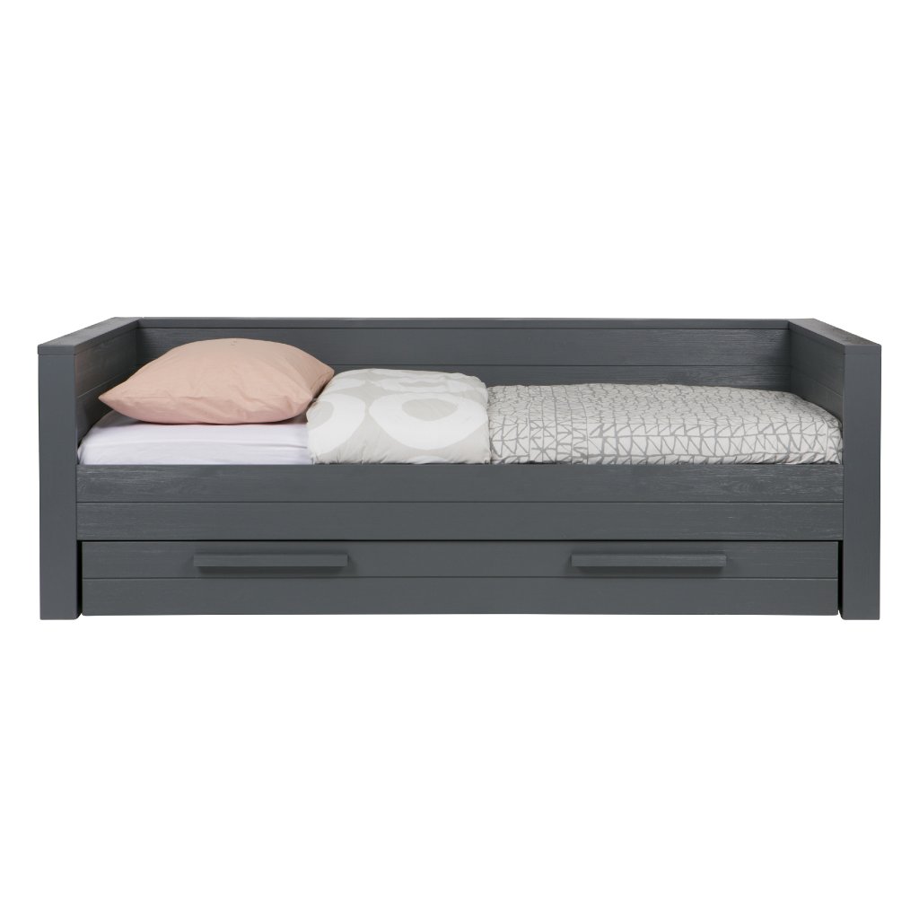 Postel DENNIS od holandského výrobce kvalitního nábytku WOOOD. Celá konstrukce postele sestává z desek masivní borovice s certifikátem FSC, což je ekologické a k přírodě šetrné zpracování dřeva. Tento kus nábytku je vyroben z kartáčovaného dřeva, žíly a detaily materiálu jsou proto zvýrazněny, což dává dřevu krásný a živý vzhled. Barevné provedení je ve šedé a tato barva společně s moderním vzhledem zaručují, že se bude hodit do spoustu stylů a interiérů dětských pokojů či ložnic. Díky vyvýšenému okraji slouží přes den jako skvělá pohovka. Matrace a rošt nejsou součástí objednávky, nutno dokoupit. Produkt je vyroben z masivního dřeva a může obsahovat suky či jiné nedokonalosti přírodního dřeva, které není vadou výrobku.
