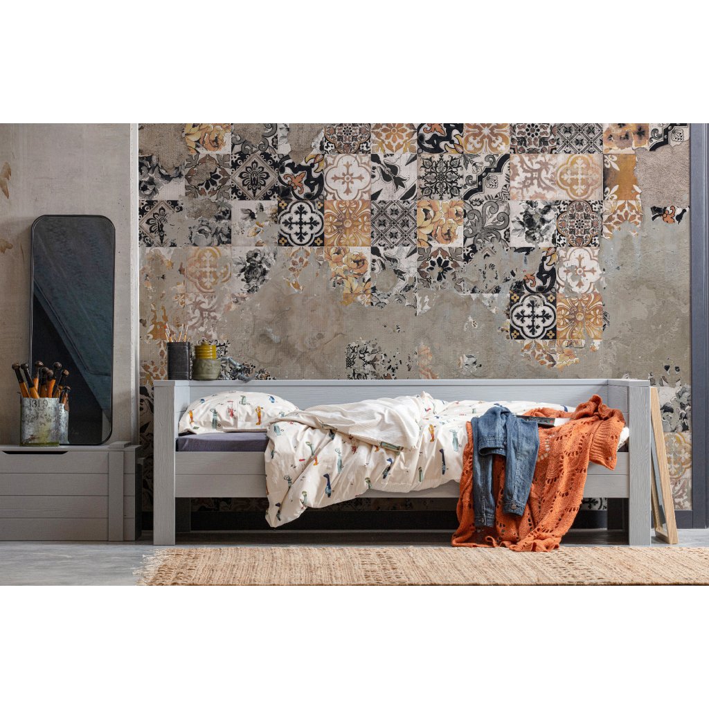 Postel DENNIS od holandského výrobce kvalitního nábytku WOOOD. Celá konstrukce postele sestává z desek masivní borovice s certifikátem FSC, což je ekologické a k přírodě šetrné zpracování dřeva. Tento kus nábytku je vyroben z kartáčovaného dřeva, žíly a detaily materiálu jsou proto zvýrazněny, což dává dřevu krásný a živý vzhled. Barevné provedení je ve světle šedé a tato barva společně s moderním vzhledem zaručují, že se bude hodit do spoustu stylů a interiérů dětských pokojů či ložnic. Díky vyvýšenému okraji slouží přes den jako skvělá pohovka. Matrace a rošt nejsou součástí objednávky, nutno dokoupit. Produkt je vyroben z masivního dřeva a může obsahovat suky či jiné nedokonalosti přírodního dřeva, které není vadou výrobku.