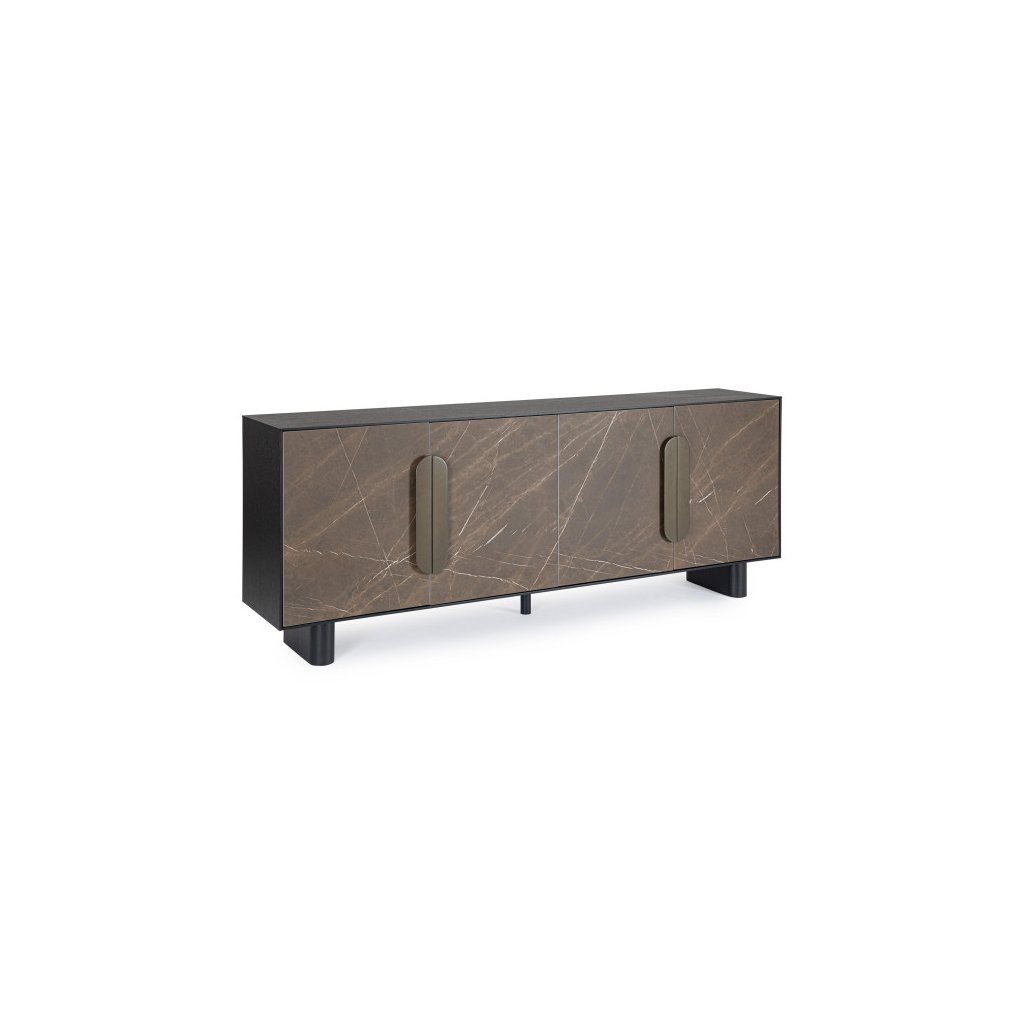Designový příborník GARRISON od italské firmy stylového nábytku BIZZOTTO. Příborník GARRISON je vyroben z mdf desek a černě lakované dubové dýhy. Přední dvířka jsou vyrobeny z keramiky v krásném provedení tmavého mramoru s mosazně vypadajícími úchyty. Dvířka mají tiché panty s dojezdem. Stylový kus nábytku do vaší domácnosti.