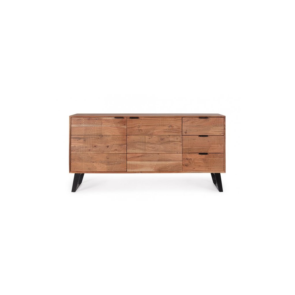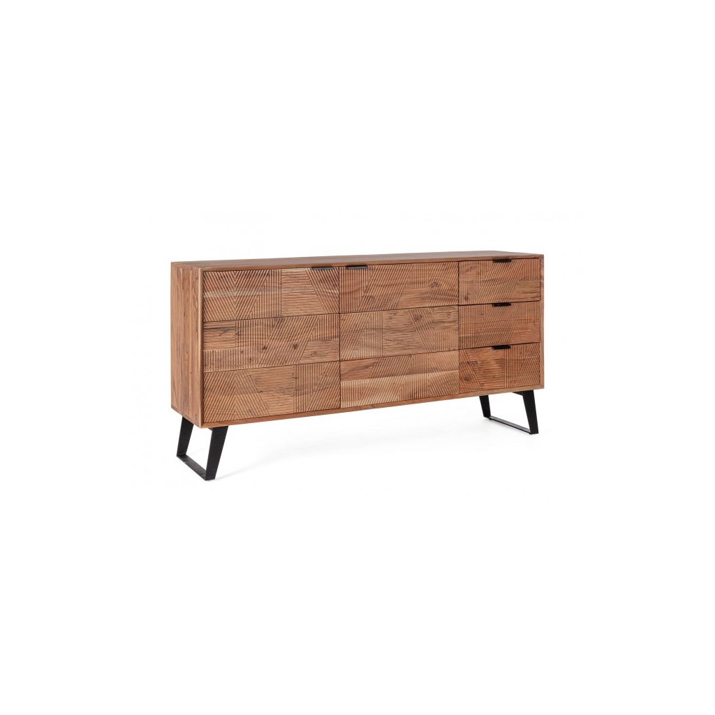 Designový příborník ISAR od italského výrobce stylového nábytku BIZZOTTO. Příborník se skládá z ocelových nohou, díky kterým má skvělou stabilitu. Konstrukce příborníku je vyrobena z akáciového dřeva. Zadní část příborníku je vyrobena z překližky. Dvě vykládaná otevírací dvířka jsou ručně vyrobená. ISAR je navíc doplněn třemi velmi praktickými zásuvkami. Příborník je finálně potažen ochrannou akrylovou vrstvou.