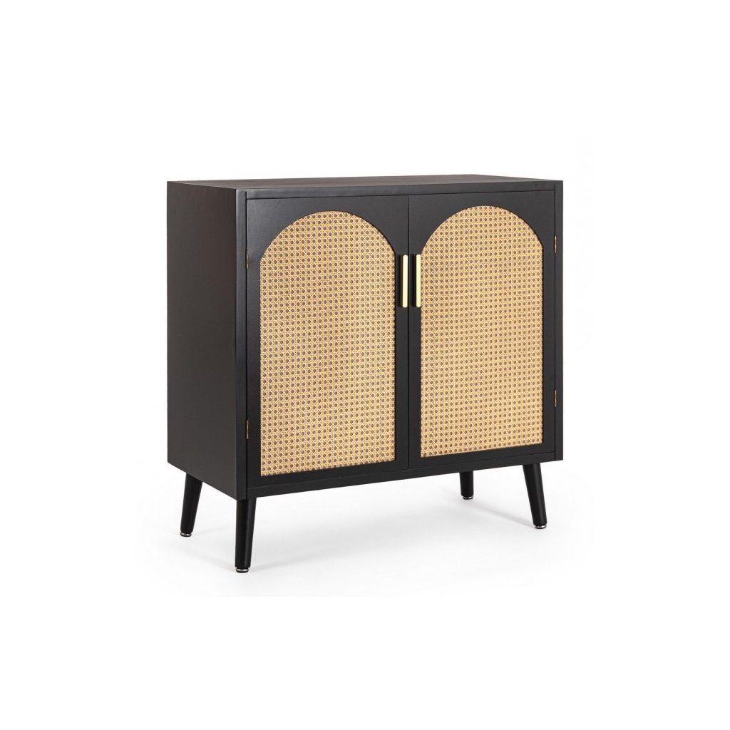 Designový příborník JOSINE od italského výrobce stylového nábytku BIZZOTTO. Krásný příborník je vyrobený z velmi kvalitního borovicového dřeva, díky jehož přirozené barvě je tento kousek jedinečný a moderní. Na přední straně na dvířkách najdete úplety z přírodního ratanu ve světlé barvě a dvě kovové úchytky dodávající dokonalost. Opravdu stylový příborník v netradičním provedení, který skvěle zapadne do každého interiéru. Za 2 dvířky otevírající se do stran je 1 police, kam si můžete uložit talíře nebo jiné kuchyňské vybavení.
