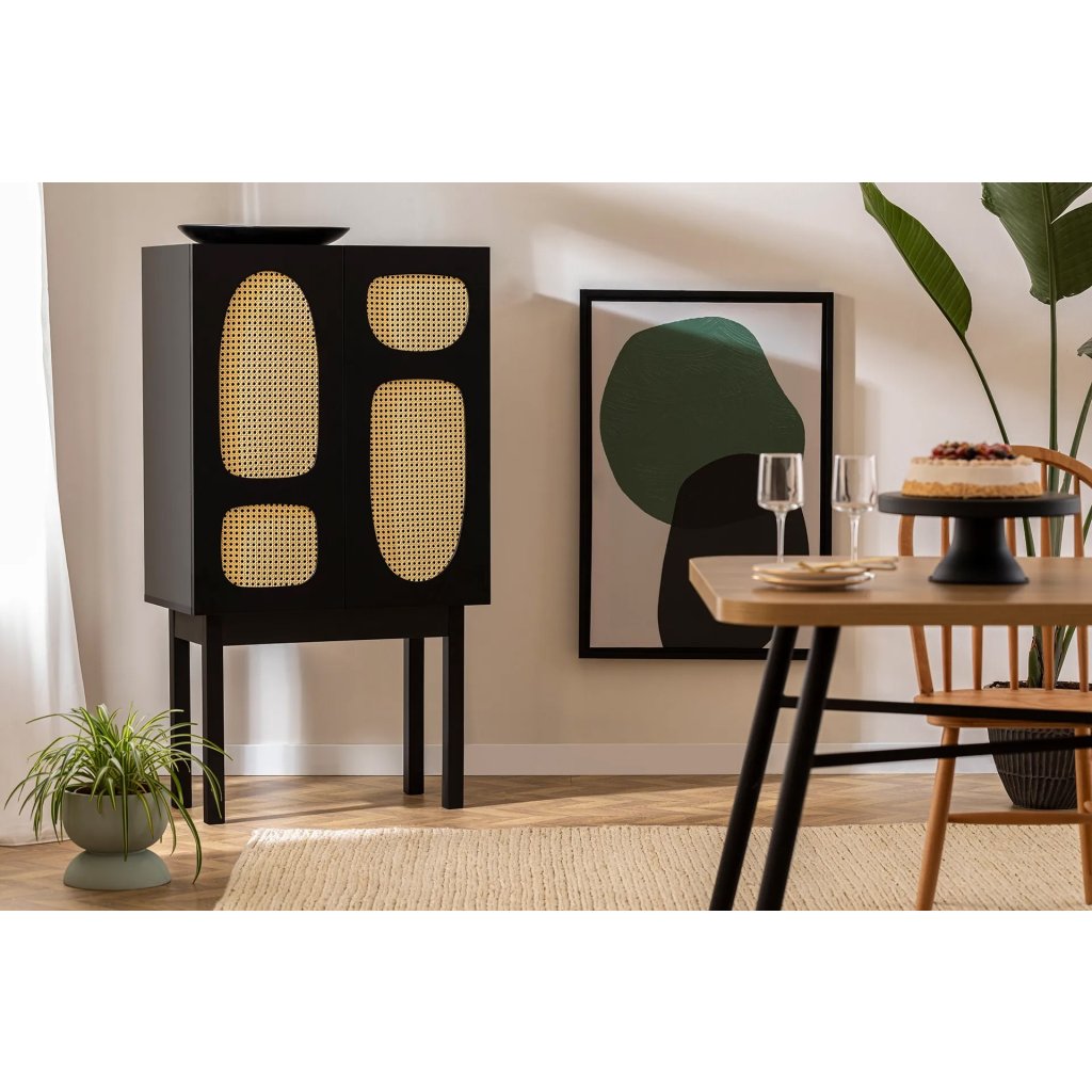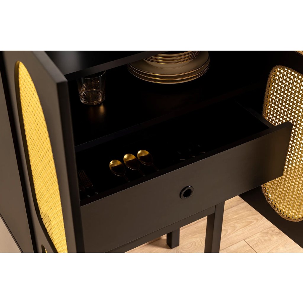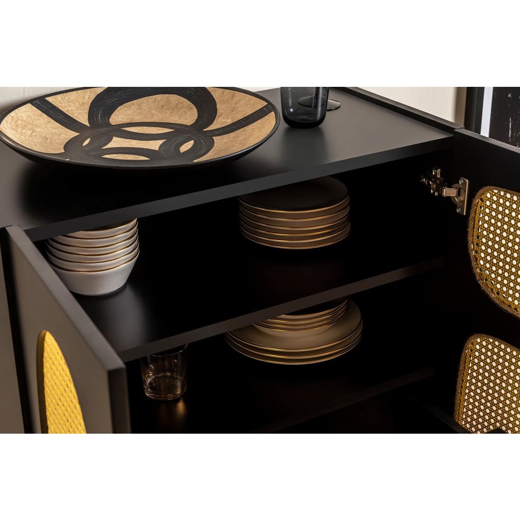 Krásný příborník SIMONA od designového výrobce nábytku KALUNE DESIGN. Příborník je vyroben z dřevotřísky s melaminovou fólií v černém provedení. SIMONA má velmi zajímavý a netradiční vzhled díky vídeňské pletenině na dvířkách. Pokud potřebujete vnést do místnosti kousek elegance, příborník SIMONA je pro vás ten pravý. Praktický a zároveň elegantní každým coulem.