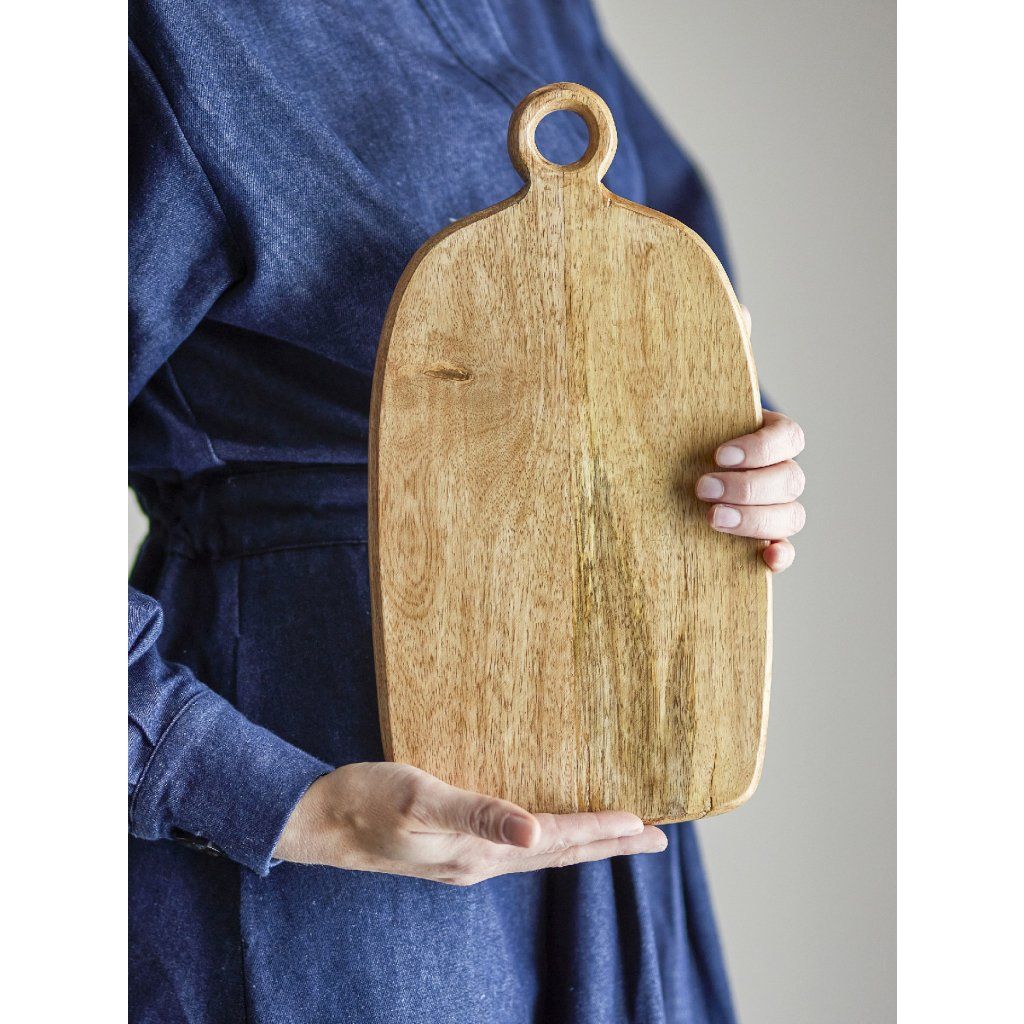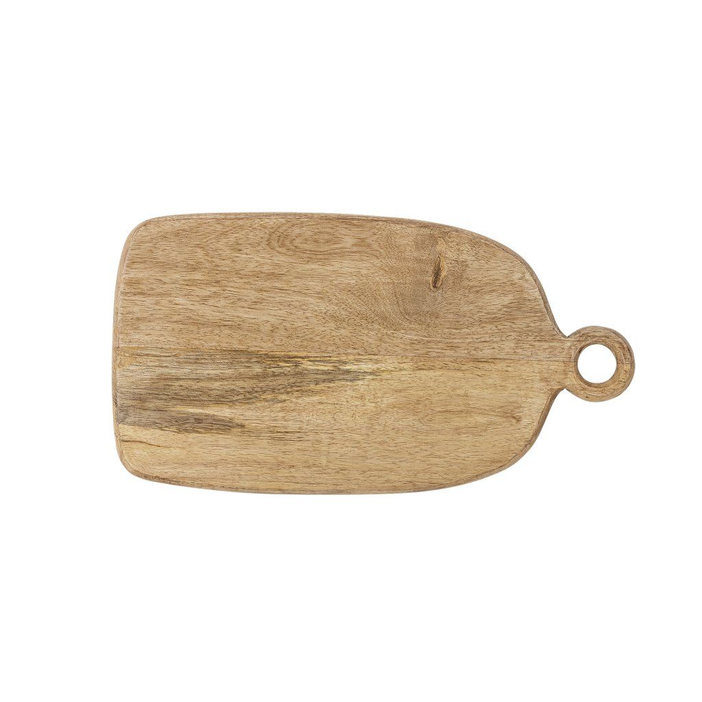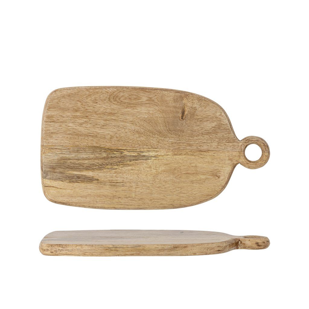 Dřevěné prkénko NONNIE od dánského výrobce kvalitního nábytku BLOOMINGVILLE. NONNIE je stylovým a praktickým doplňkem do každé kuchyně. Je vyrobeno z mangového dřeva s certifikací FSC, jehož přirozená kresba je zvýrazněna jemnou lakovanou úpravou. Díky tomu vyniká autentická textura dřeva a každý kus je originál s vlastními barevnými nuancemi. Design prkénka je jednoduchý a zároveň promyšlený – mírně zaoblené hrany a ergonomická rukojeť s kruhovým výřezem zajišťují pohodlné používání i snadné zavěšení. Teplý přírodní odstín dodává prkénku útulný charakter a umožňuje jeho využití nejen při přípravě pokrmů, ale také jako elegantní servírovací podnos pro pečivo, sýry nebo drobné občerstvení. Prkénko není vhodné do myčky nádobí, mikrovlnné trouby ani trouby.