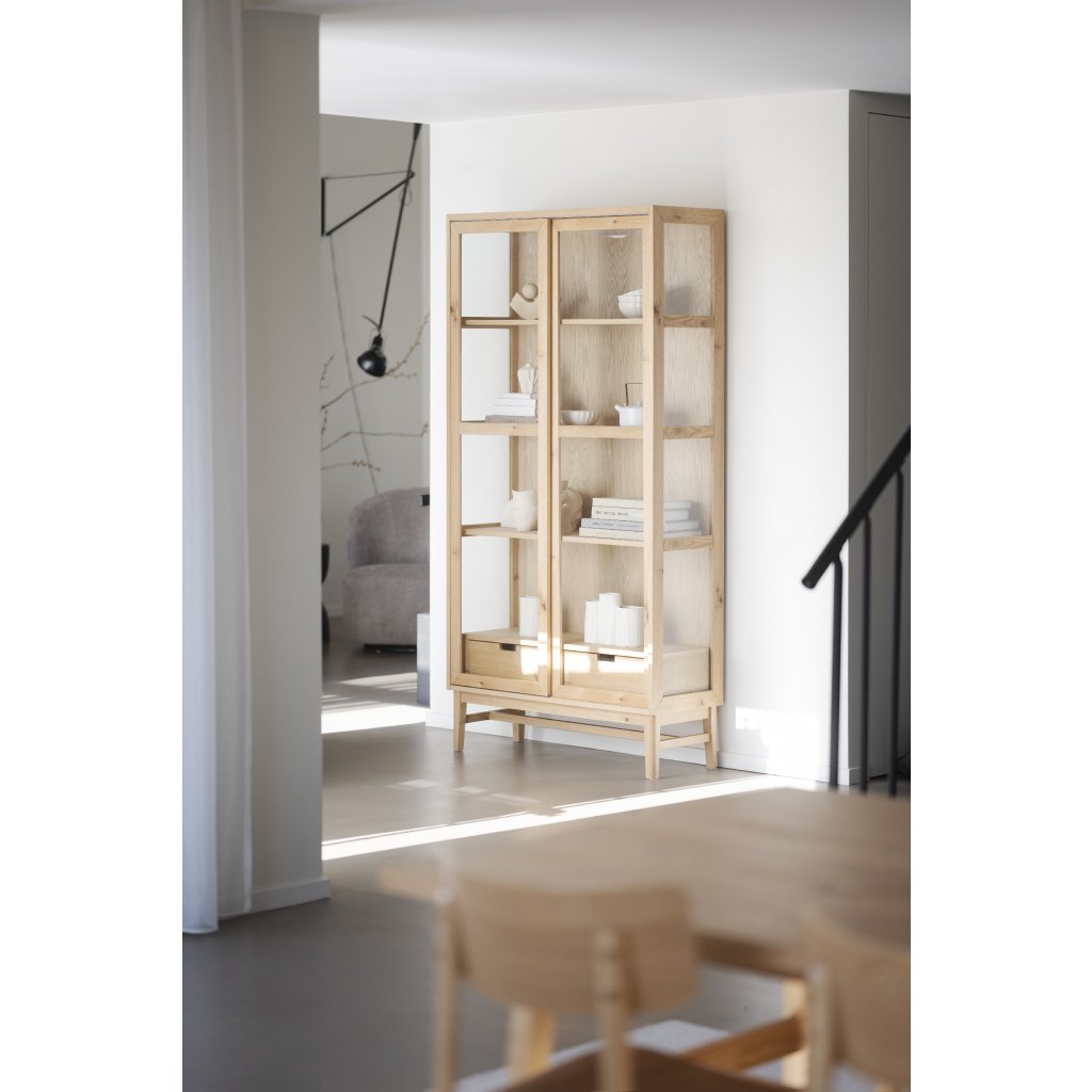 Designová prosklená vitrína HAZELNUT od švédského výrobce kvalitního dřevěného nábytku ROWICO. HAZELNUT je krásná vitrína vyrobená z ekologicky získaného dubového dřeva v broušeném a následně olejovaném provedení. Skříňka je postavená na pevné masivní konstrukci. Obě dvířka jsou vyplněna skleněnými tabulemi. Díky 4 vnitřním poličká je vitrína velmi prostorná a vhodná na jakékoliv využití. Je to krásný a poctivě vyrobený kus nábytku, který si užijí nejen milovníci skandinávského stylu. Pro tento krásný a moderní výrobek existuje řada možných uplatnění, zcela jistě se stane skvělým doplňkem jakéhokoliv moderního interiéru.