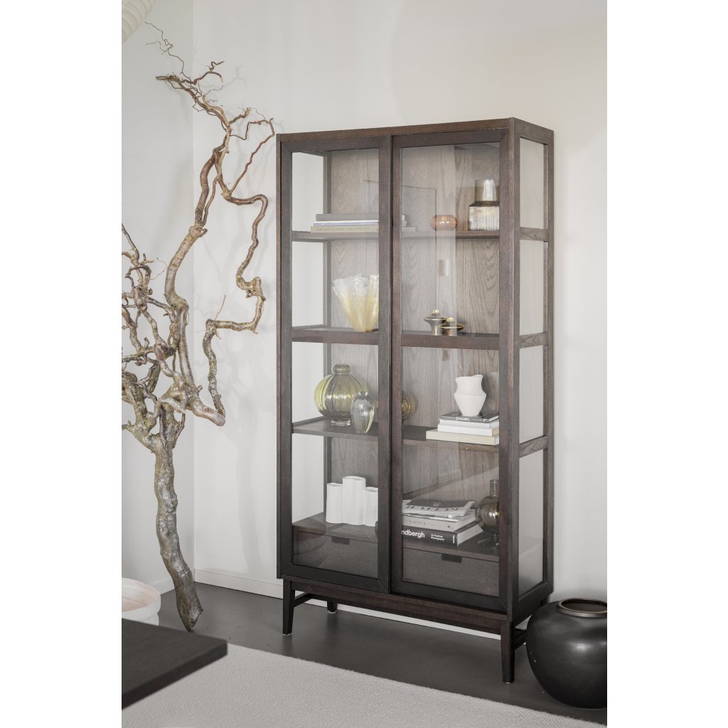 Designová prosklená vitrína HAZELNUT od švédského výrobce kvalitního dřevěného nábytku ROWICO. HAZELNUT je krásná vitrína vyrobená z ekologicky získaného dubového dřeva v tmavě hnědém provedení. Skříňka je postavená na pevné masivní konstrukci. Obě dvířka jsou vyplněna skleněnými tabulemi. Díky 4 vnitřním poličká je vitrína velmi prostorná a vhodná na jakékoliv využití. Je to krásný a poctivě vyrobený kus nábytku, který si užijí nejen milovníci skandinávského stylu. Pro tento krásný a moderní výrobek existuje řada možných uplatnění, zcela jistě se stane skvělým doplňkem jakéhokoliv moderního interiéru.