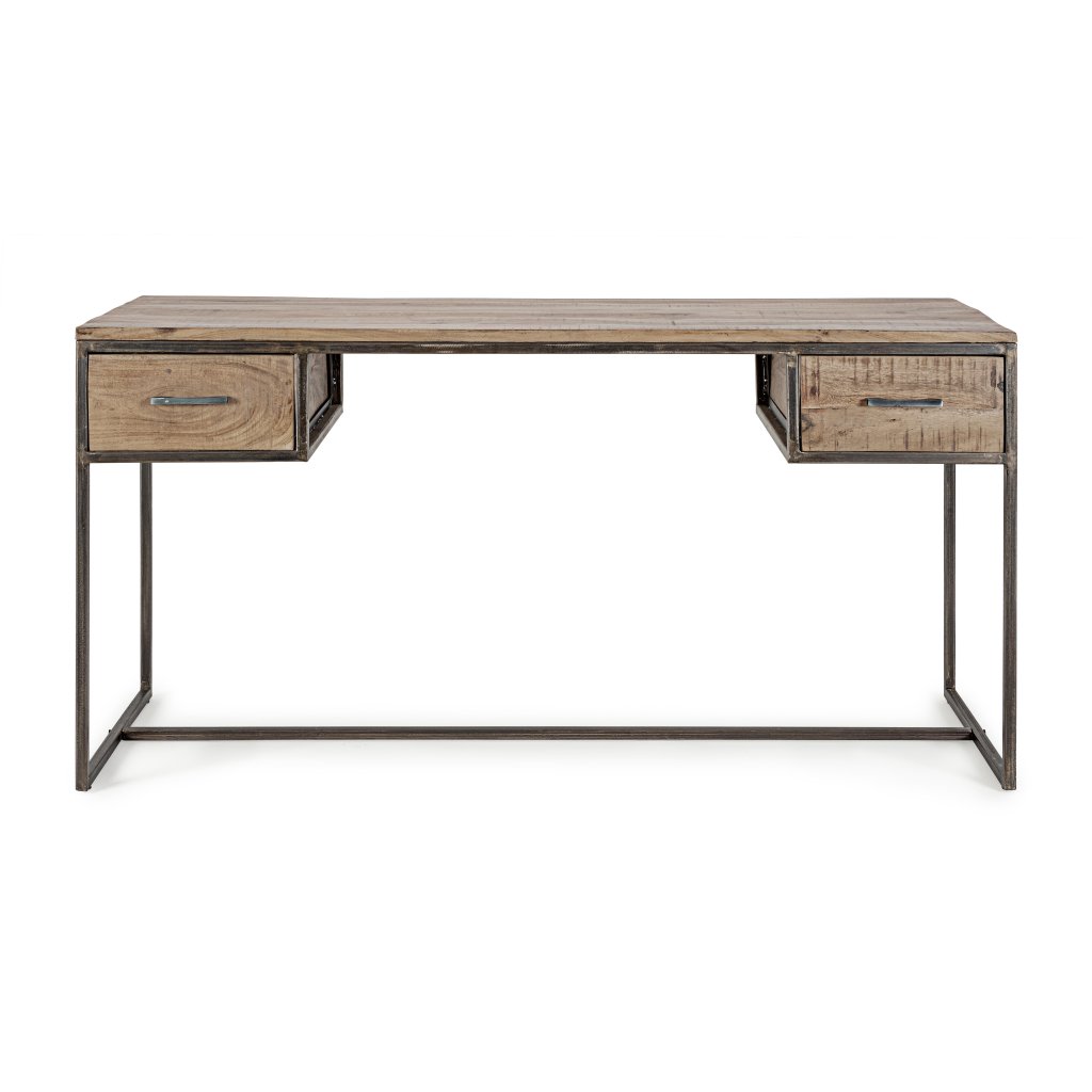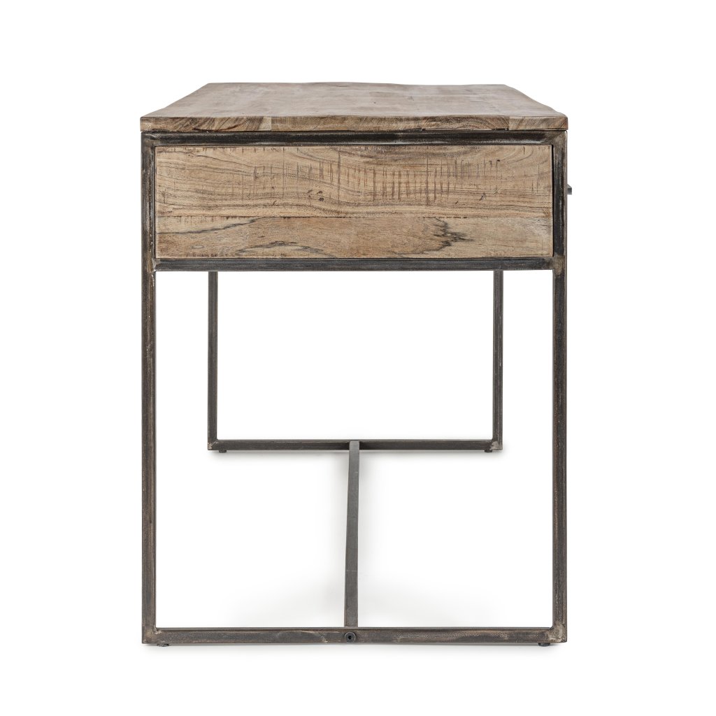 Industriální psací stůl ELMER od italského výrobce stylového nábytku BIZZOTTO v kombinaci kovu a akáciového dřeva.