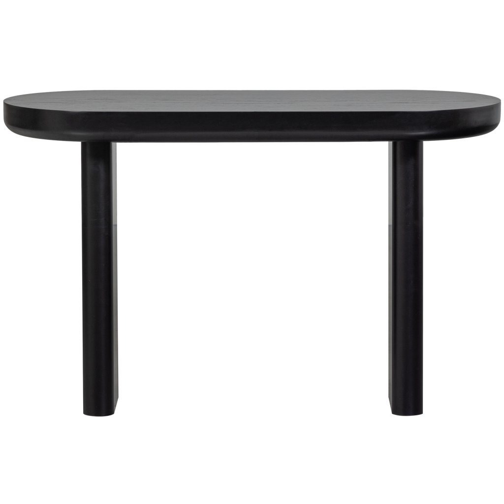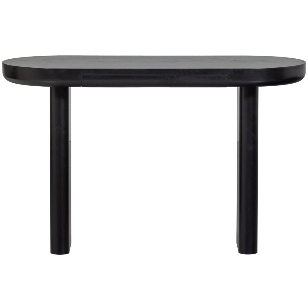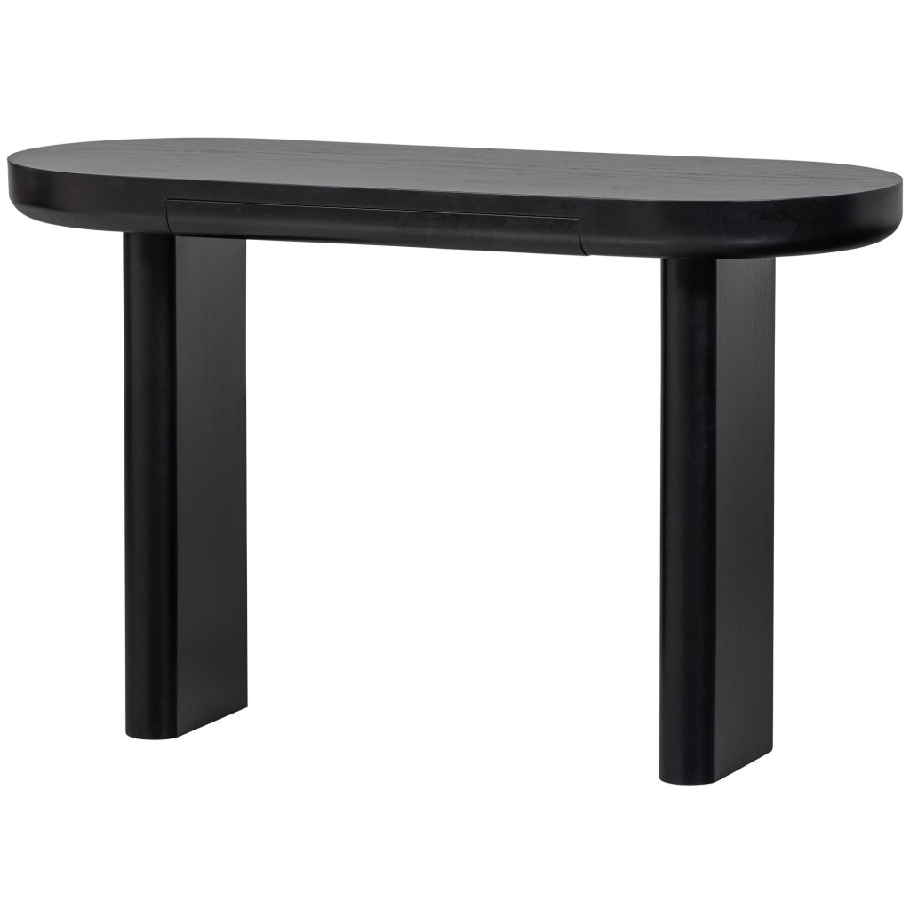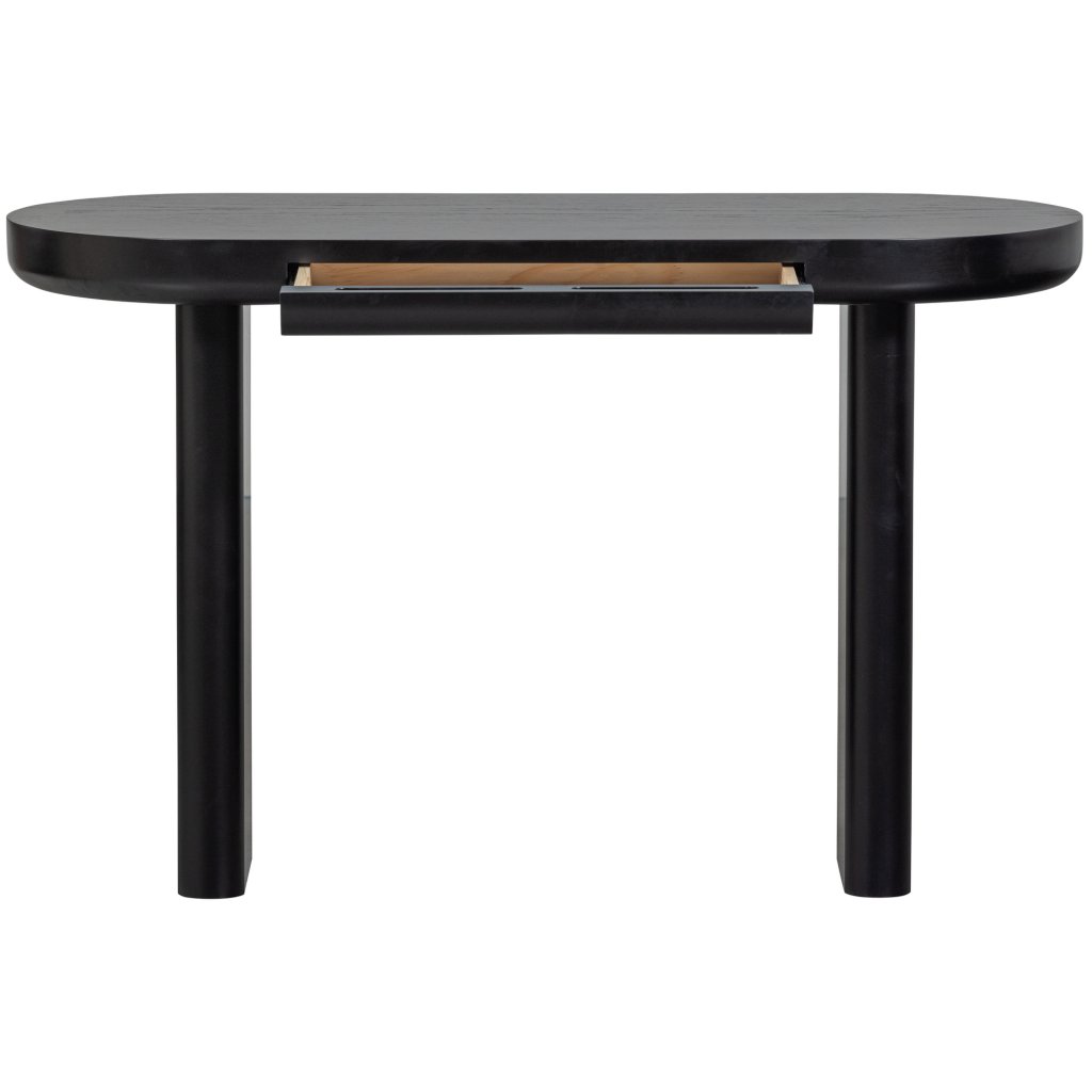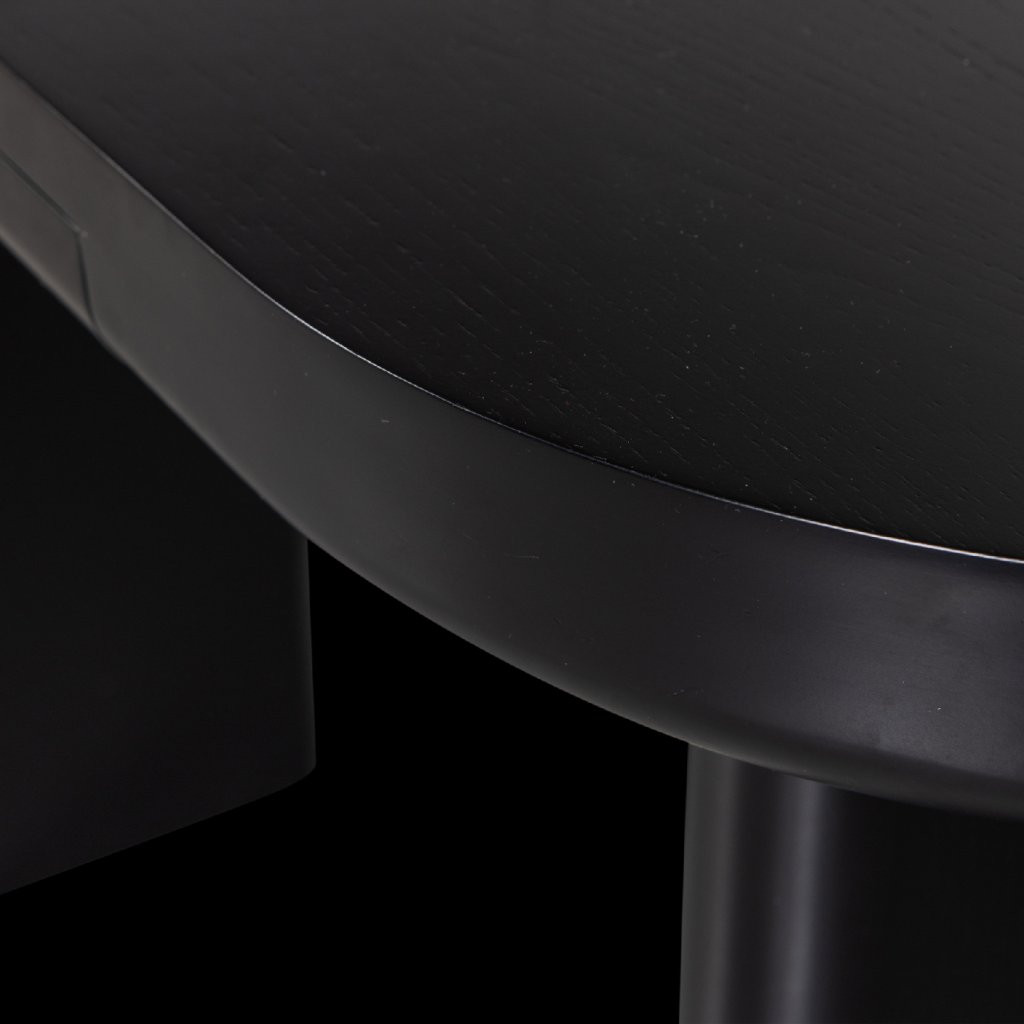 Designový psací stůl MAEL od holandského výrobce nábytku WOOOD. Psací stůl MAEL tvoří 2 dřevěné nohy, které zajišťují maximální stabilitu a nosnost. Vršek stolu tvoří oválná pracovní deska z MDF s černou dýhou Pod deskou je umístěna 1 výsuvná zásuvka v černém provedení. Jde tak o masivní a kvalitní psací stolek.
