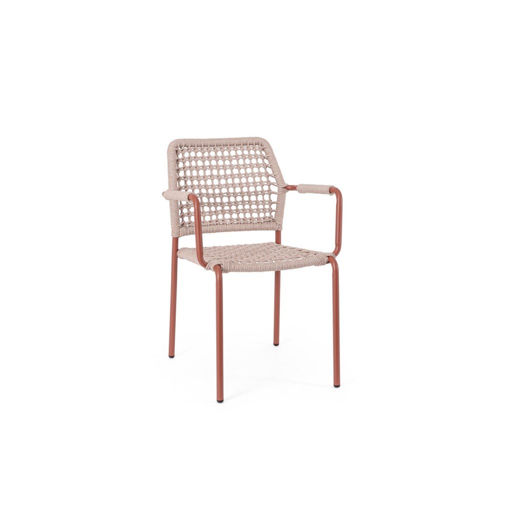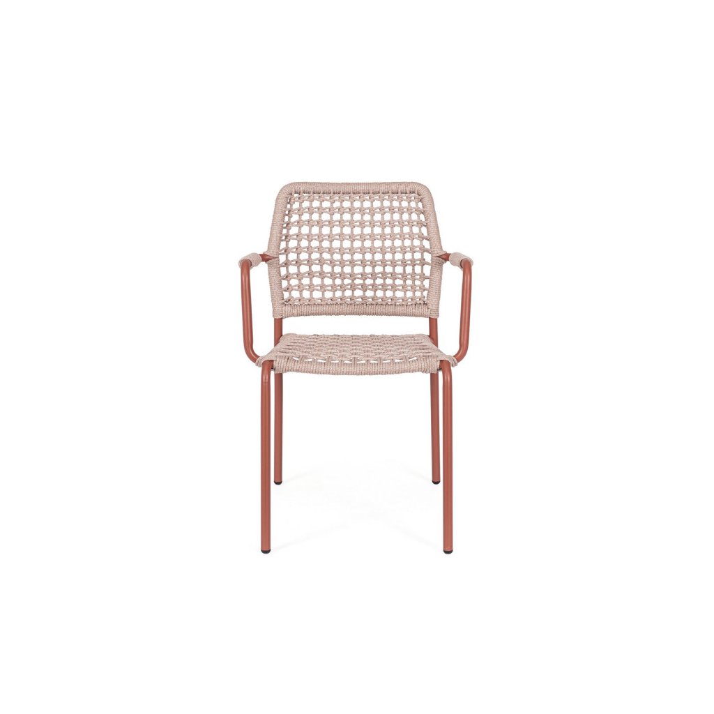 Designová zahradní židle RAJADA od italského výrobce stylového nábytku BIZZOTTO. Židle RAJADA je dodávána s konstrukcí z práškovaného hliníku v červené barvě. Sedák a zadní opěrka je tvořena hlavně výpletem ze syntetického vlákna v barvě světle šedé. Pro větší komfort oceníte i kovové područky. Díky odolnému materiálu je možné využít jak uvnitř, tak i venku.