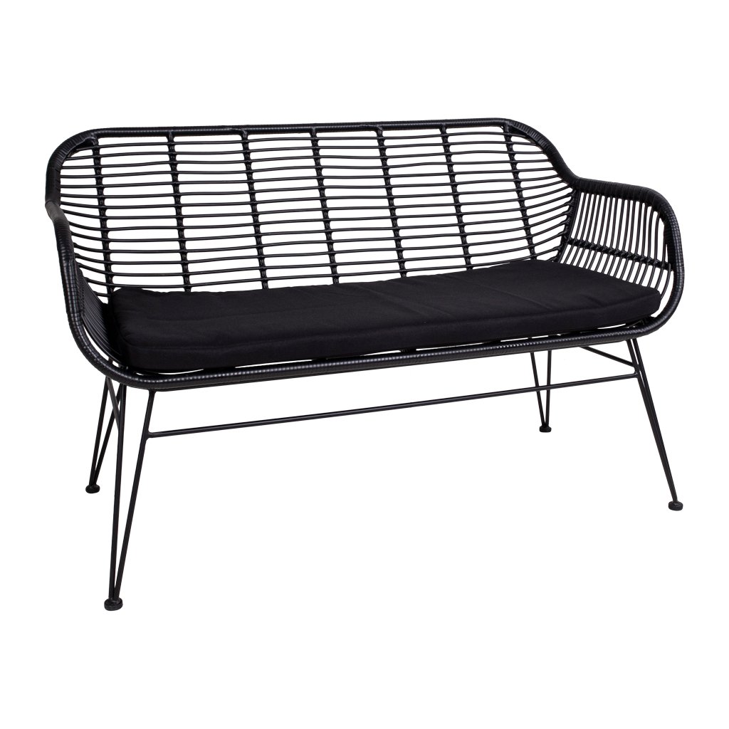 Designová ratanová pohovka TRIESTE od dánské značky nádherného nábytku HOUSE NORDIC. TRIESTE je dodávána s rámem ze 4 dvojitých kovových nohou, které jsou navzájem propojeny. To dodává pohovce maximální stabilitu a pevnost. Vrchní část pohovky tvoří sedák s opěrkou s rozměry 126x50cm z černého ratanu a polyuretanovým sedacím podélným polštářkem. Díky polyratanu lze pohovku využít jak uvnitř, tak i venku.