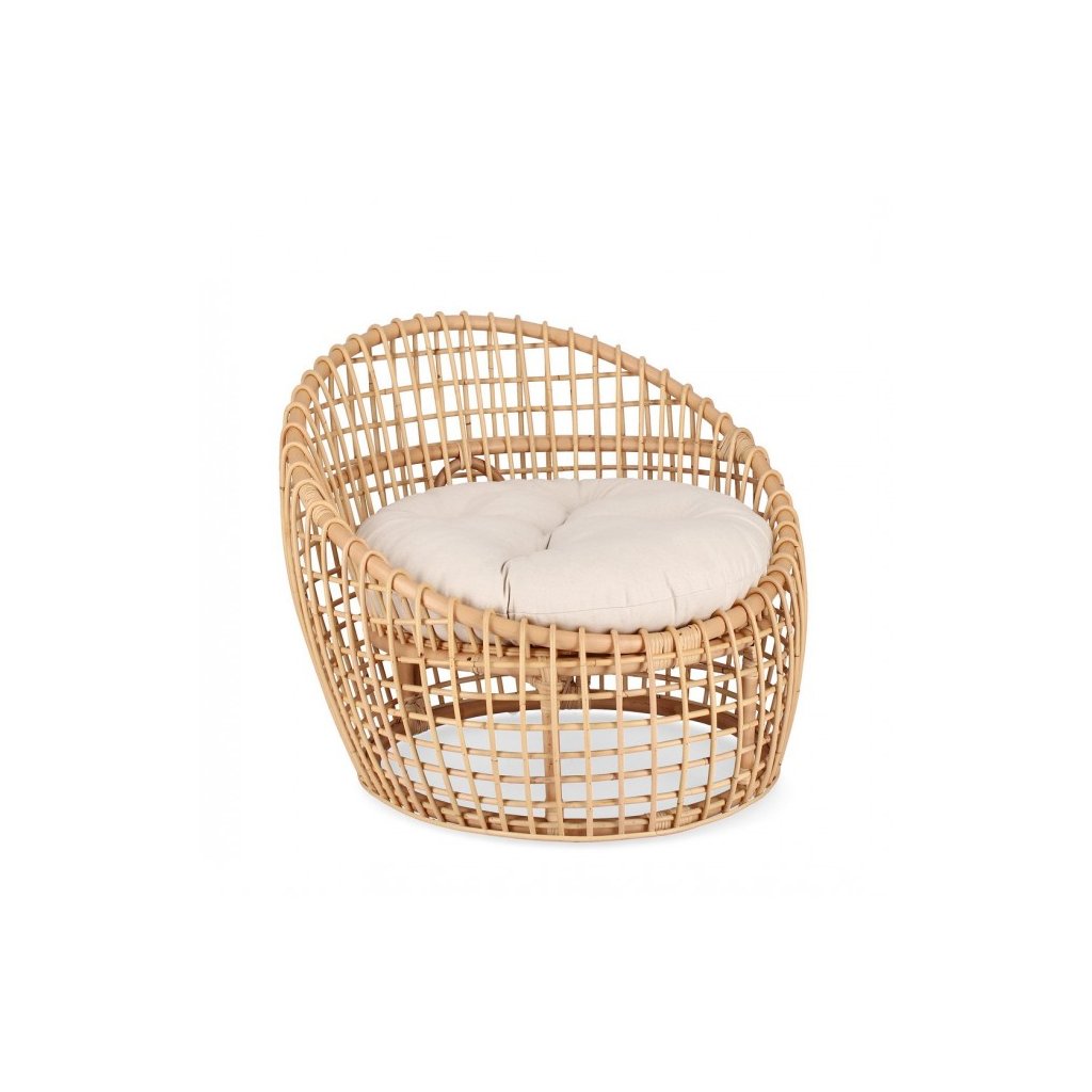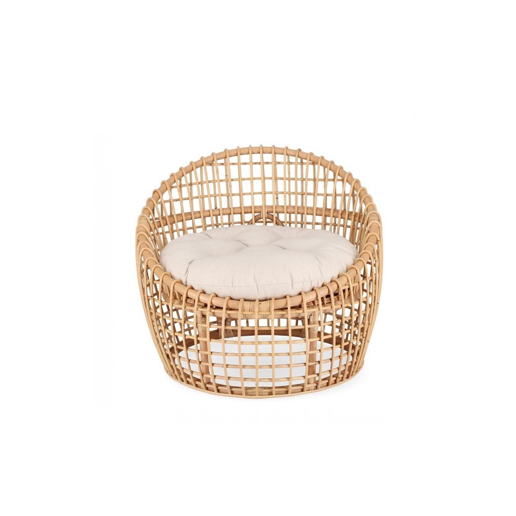 Designové ratanové křeslo CAMELOTE od italského výrobce kvalitního nábytku BIZZOTTO. Křeslo je kompletně vyrobeno z jednotlivých prutů umělého ratanu ve světlé barvě, které jsou navzájem propojeny do mříže. Pro větší komfort je křeslo dodáváno s pohodlným polštářkem z polyesteru, který vám jistě zpříjemní strávený čas u vaší oblíbené knížky či kávy. Křeslo lze použít uvnitř i venku. Nevystavujte přímému sluníčku.